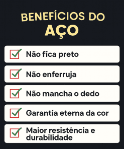 • Material da Corrente: Aço Inoxidável (antialérgico e resistente)