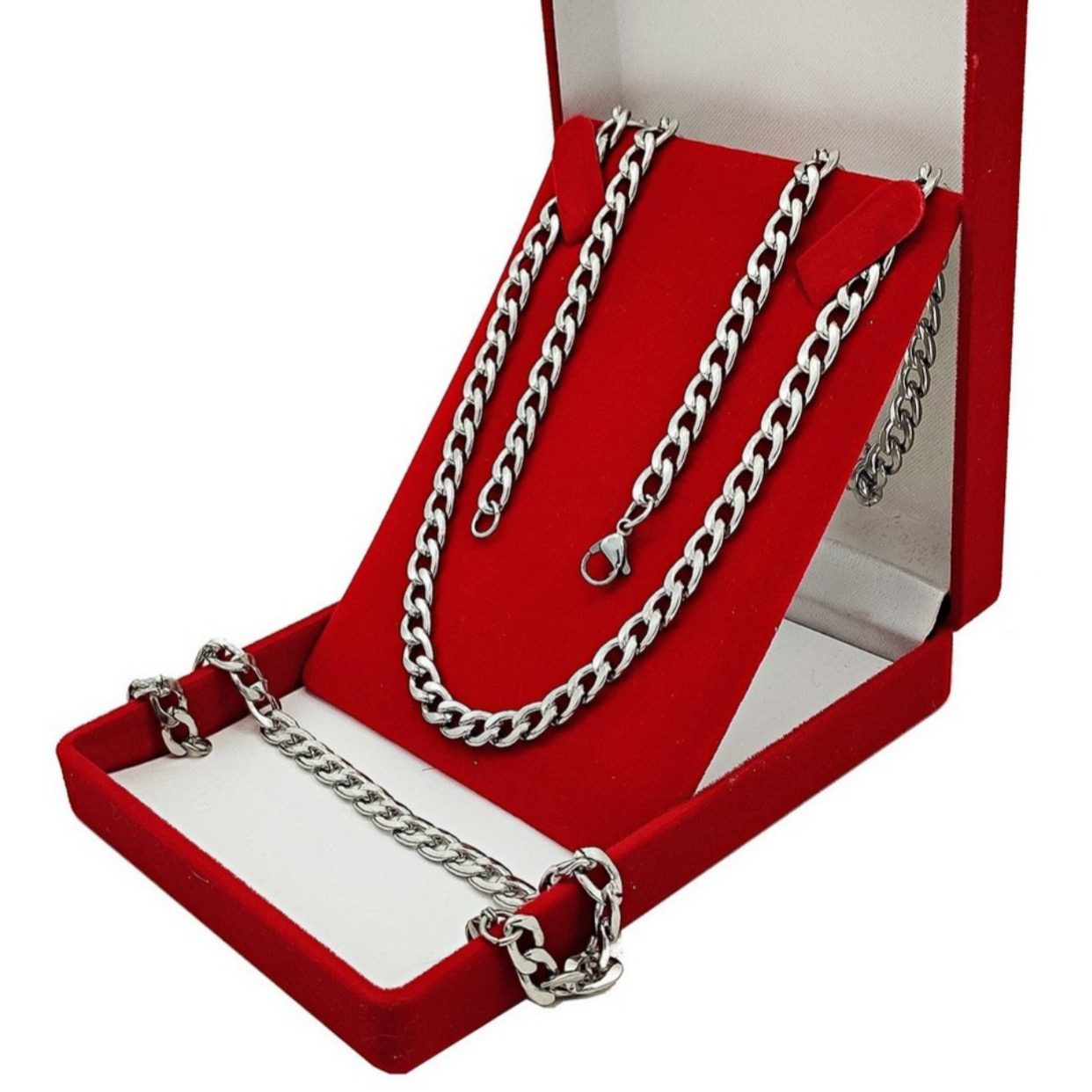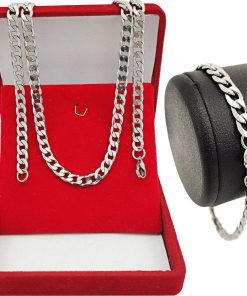 Corrente Cordão 70cm Tipo Grumet + Pulseira Prata Aço Cirúrgico