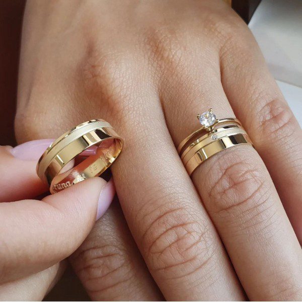 O Modelo Semi Anatômico 6mm é a escolha perfeita para casais que buscam elegância e sofisticação. Com acabamento alto luxo e 2 frisos laterais fosco lixado, essas alianças exalam requinte. A aliança feminina vem adornada com uma pedra de zircônia dentro do friso, adicionando brilho e delicadeza ao design. Feitas em moeda antiga e banhadas a ouro 18k, estas alianças oferecem durabilidade e um acabamento perfeito. O anel solitário opcional permite personalizar ainda mais o conjunto.