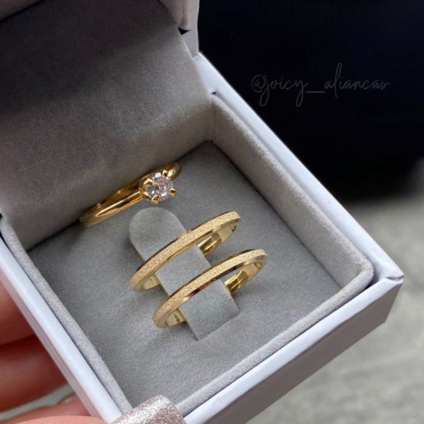 Alianças de Casamento 2mm | Chanfrado e Diamantado | Moeda Antiga Banhada a Ouro 18K | Anel Solitário Opcional