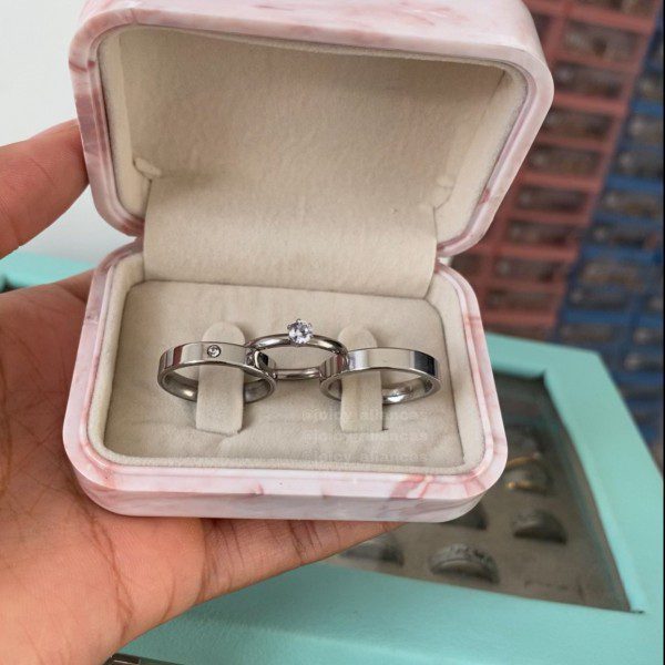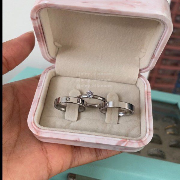 ● Par de Alianças prata em aço cirúrgico.