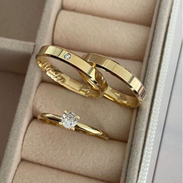 • Oferecemos a opção de gravação no par de alianças. No entanto, pedimos que verifique atentamente os tamanhos antes de solicitar a gravação, pois, em caso de troca devido ao tamanho, a gravação impede a devolução ou troca do produto.