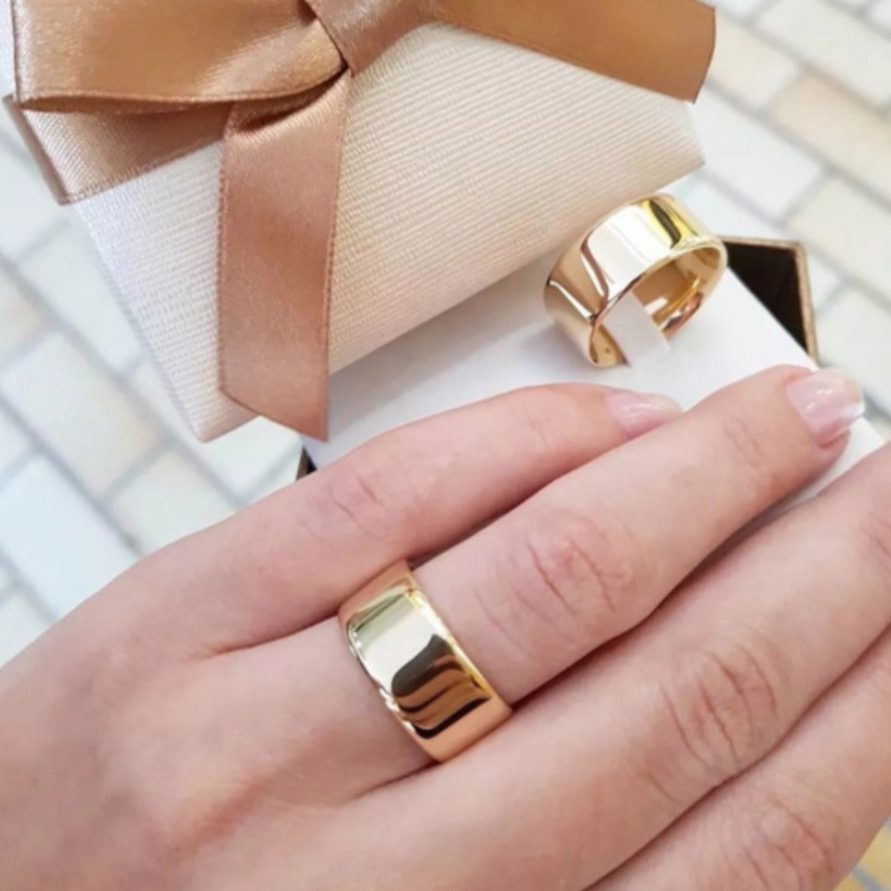 Alianças de Casamento 10mm | Moeda Antiga | Acabamento Anatômico | Banhado a Ouro 18K