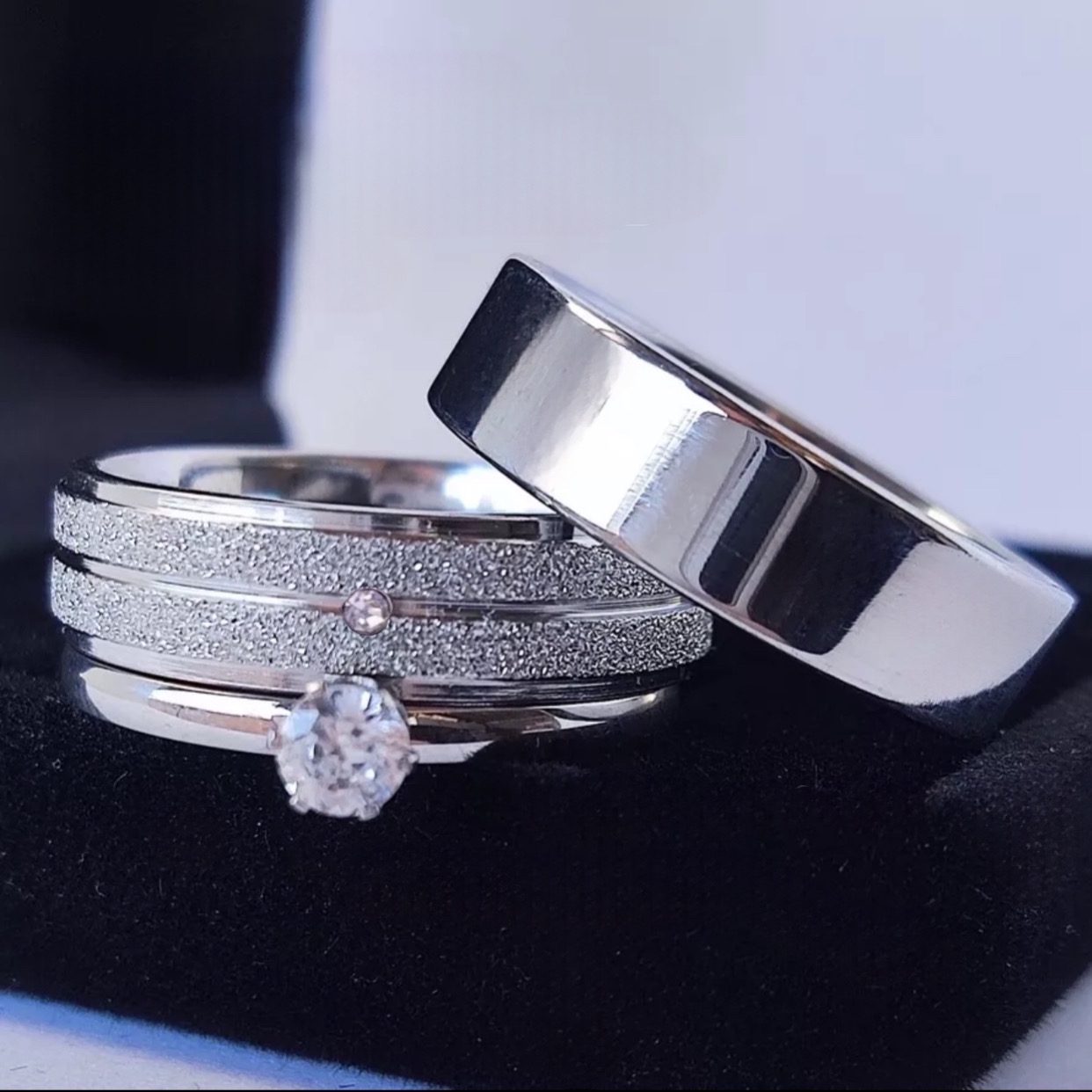 Par de Alianças 6mm De Aço Cirúrgico Cor Prata Diamantado Mod 42
