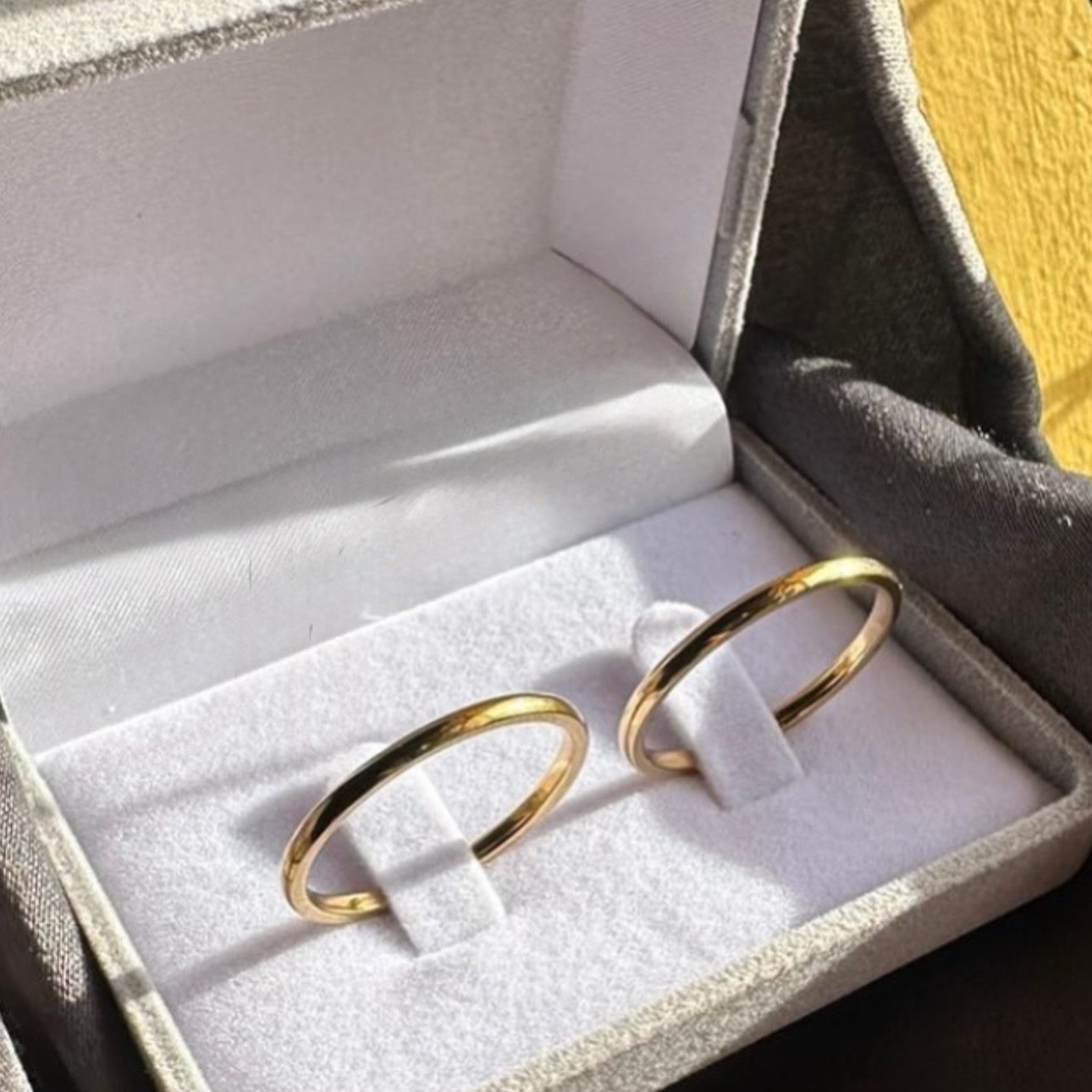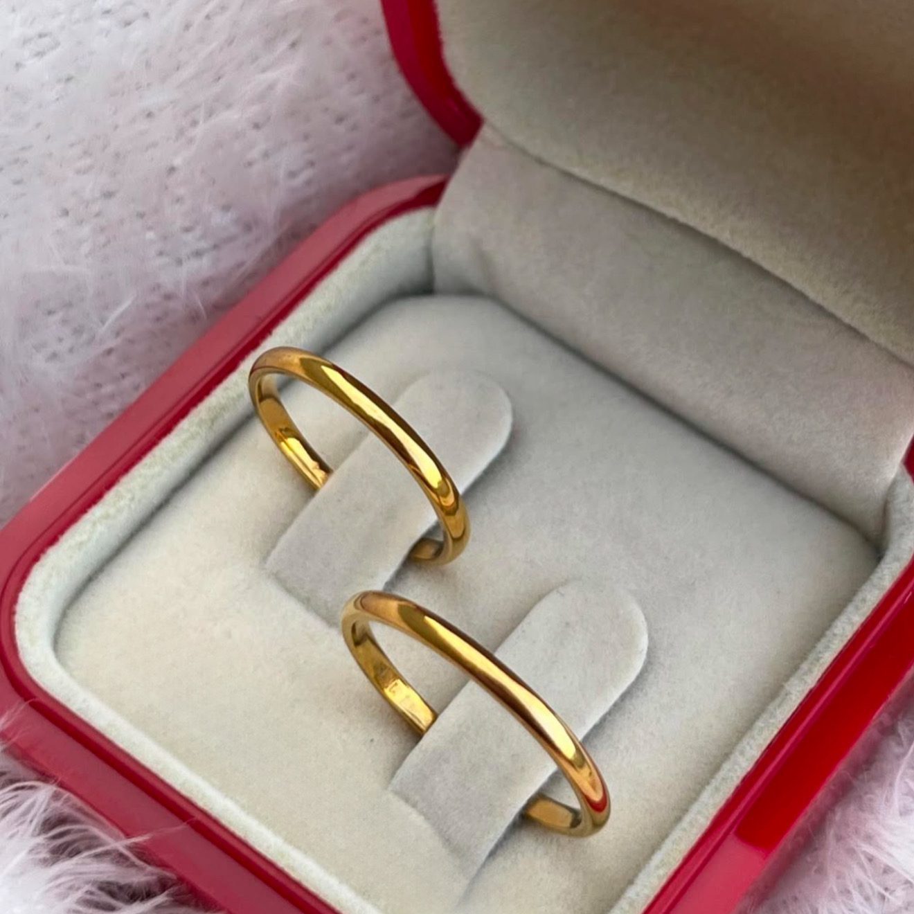 Par de alianças aço cirúrgico banhado a ouro 18k- 2mm- tradicional – ideal para casamento e noivado.