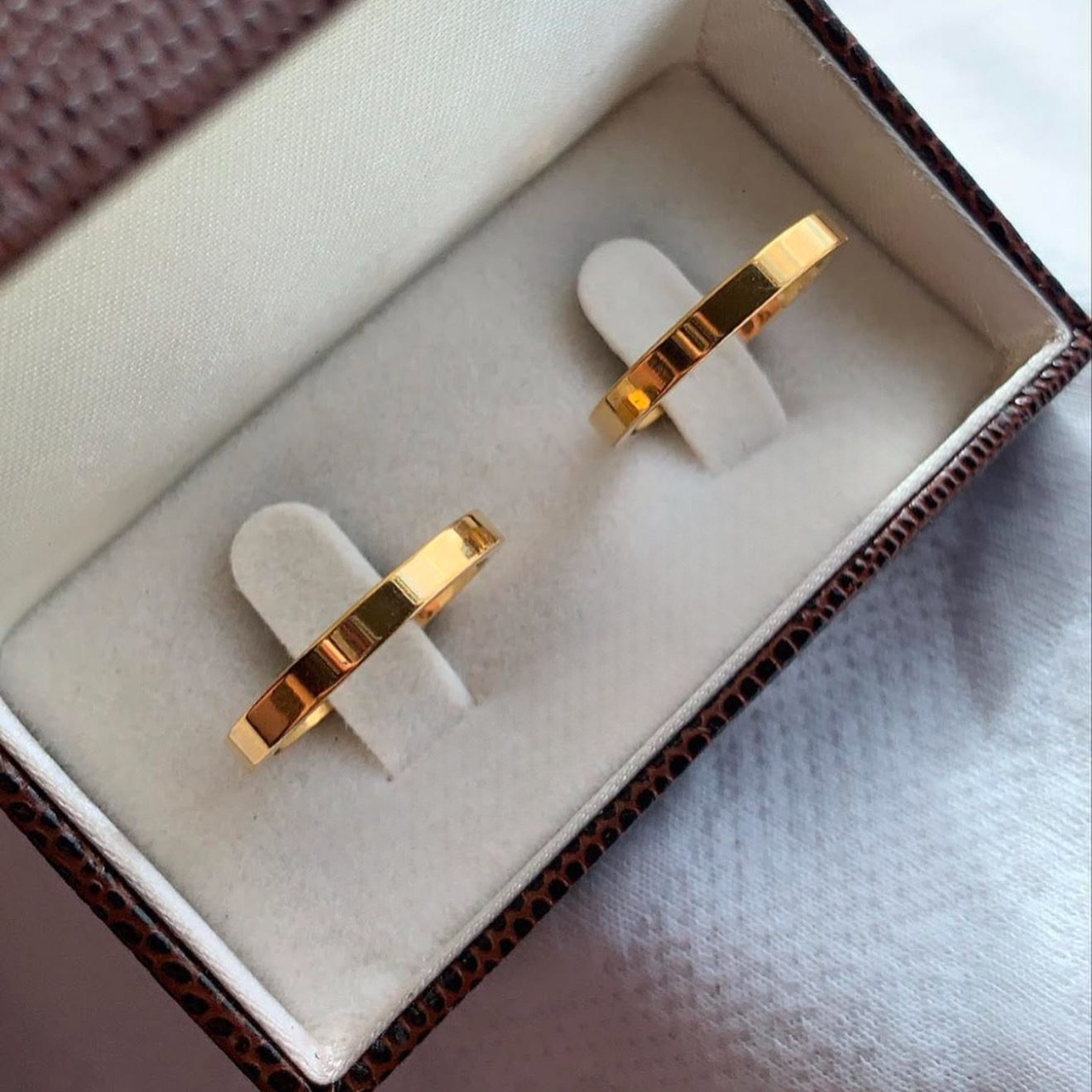Alianças de Casamento Finas 3mm em Aço Banhado a Ouro 18K – Reta Anatômica