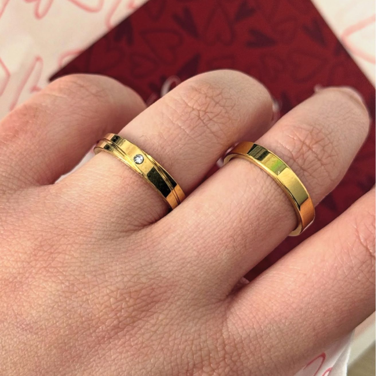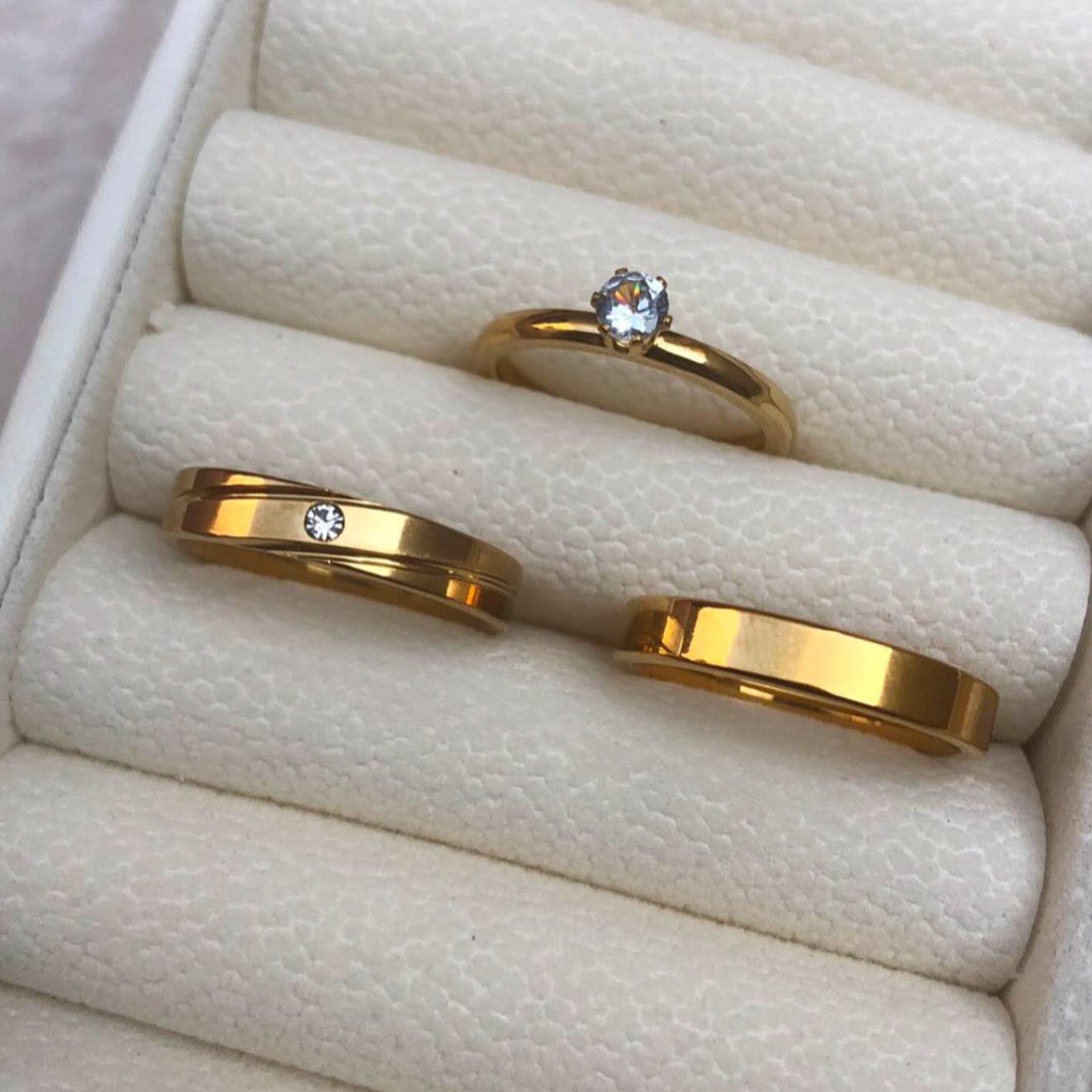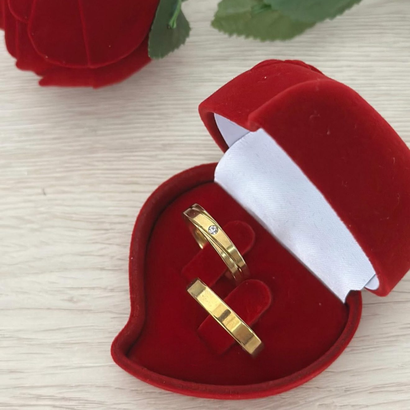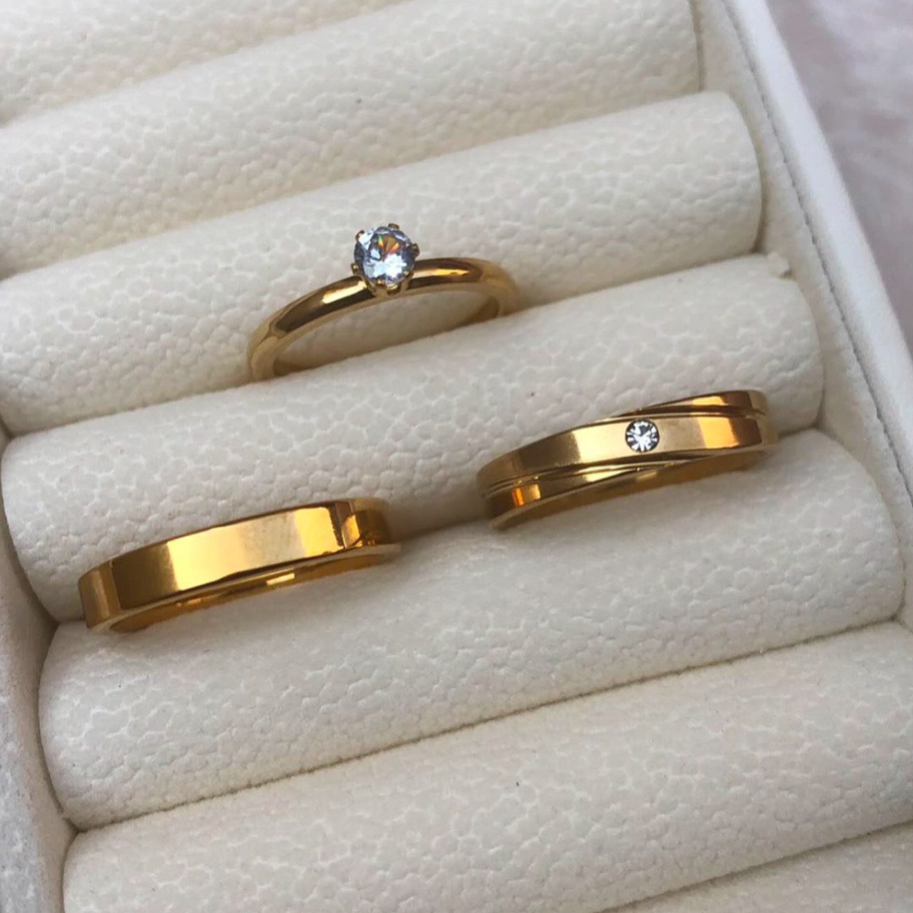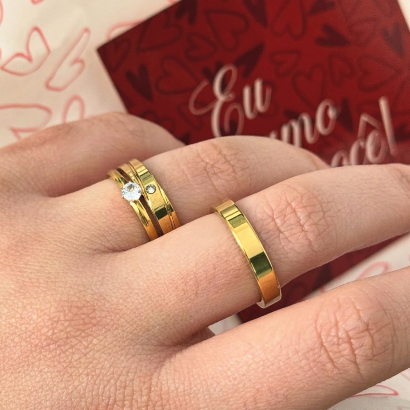 • 1 Par de alianças em aço cirúrgico banhado a ouro 18K