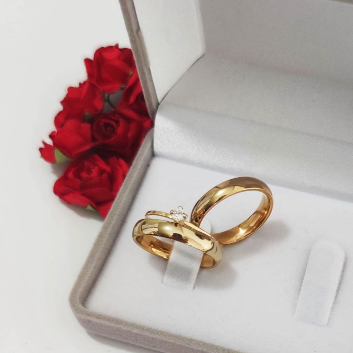 Alianças De Noivado Aço Cirúrgico Banhado A Ouro 18k- 4mm Tradicional