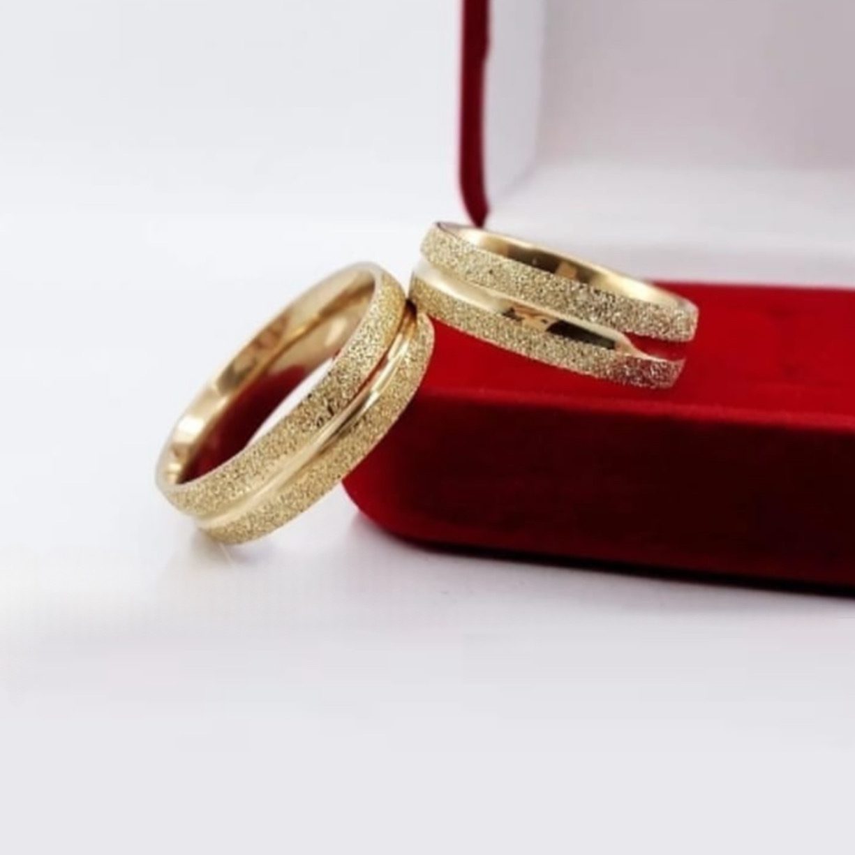 ● Par de Alianças em aço cirúrgico banhado a ouro 18k