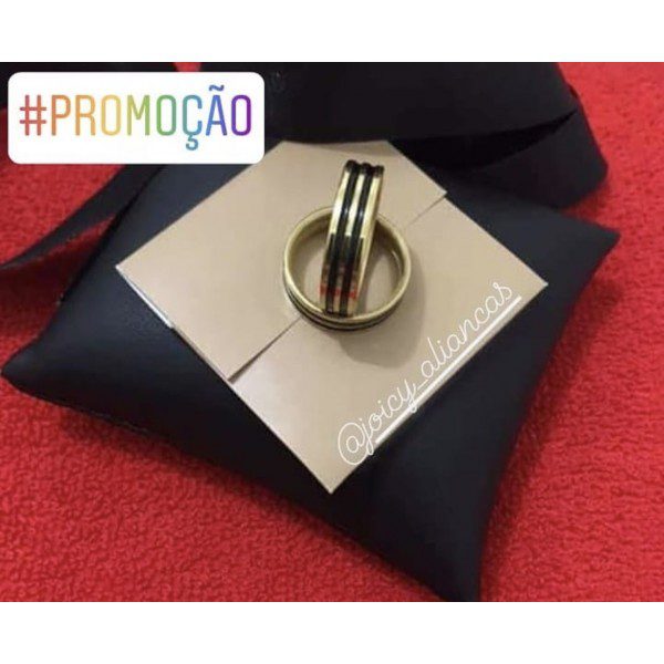 Par De Alianças Aço Cirúrgico Banhado A Ouro 18k – 6mm Dourado E Preto- Liso Com Frisos