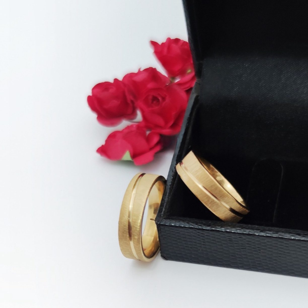 Alianças De Noivado Banhado A Ouro 18k – 6mm – Fosco Com Friso Mod 02