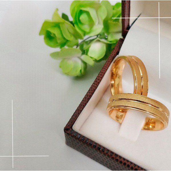 Par De Alianças Aço Cirurgico Banhado A Ouro 18k – 6mm Fosco