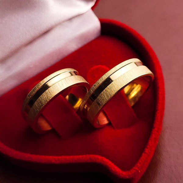 Par De Alianças Aço Cirúrgico Banhado A Ouro 18k – 6mm- Friso Lateral Modelo Fosco