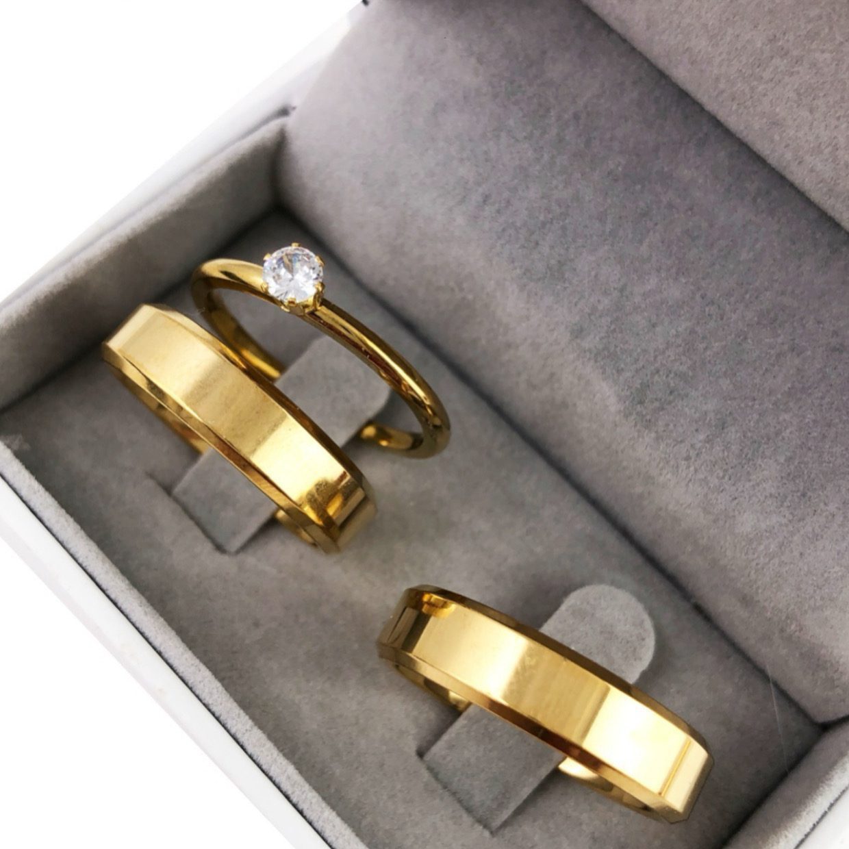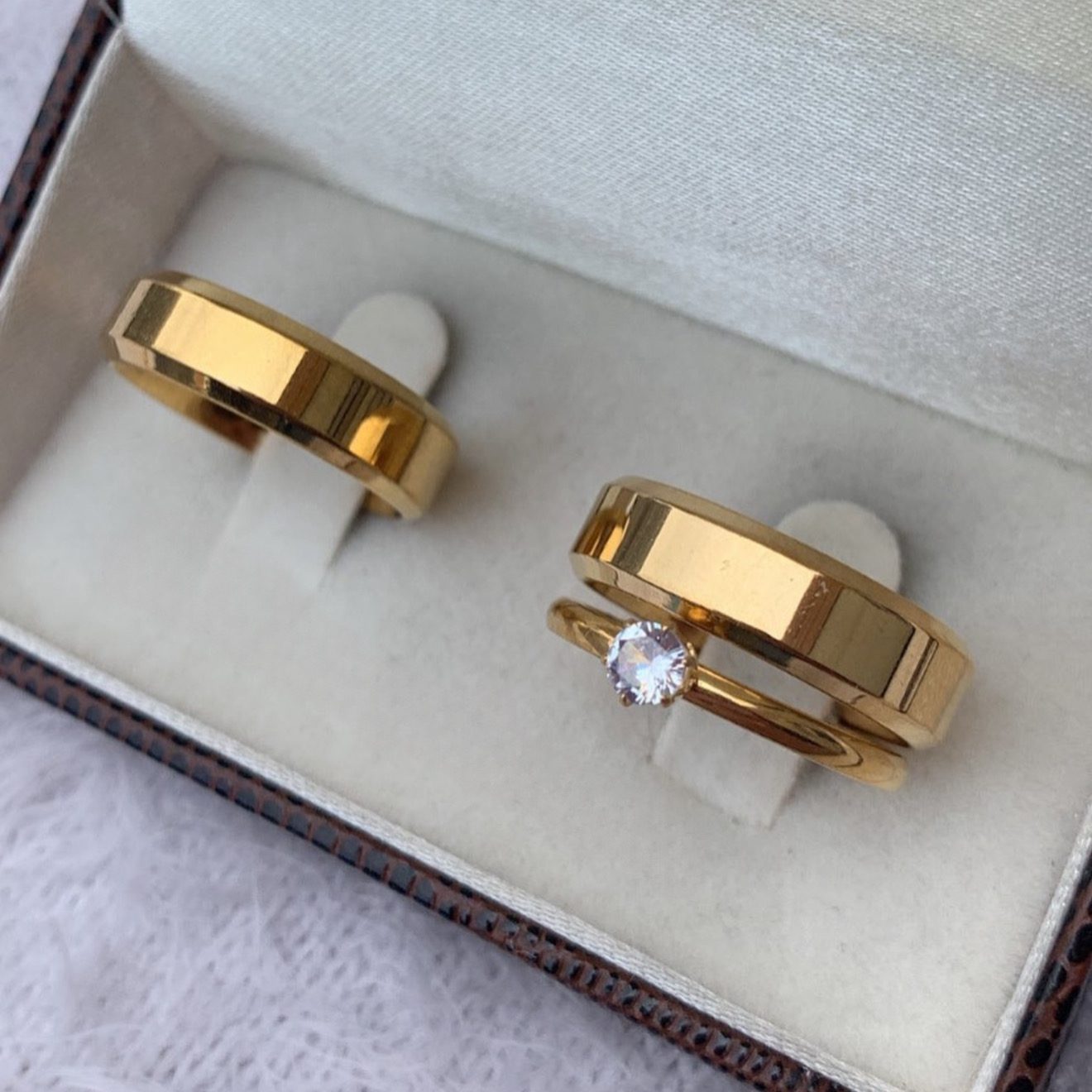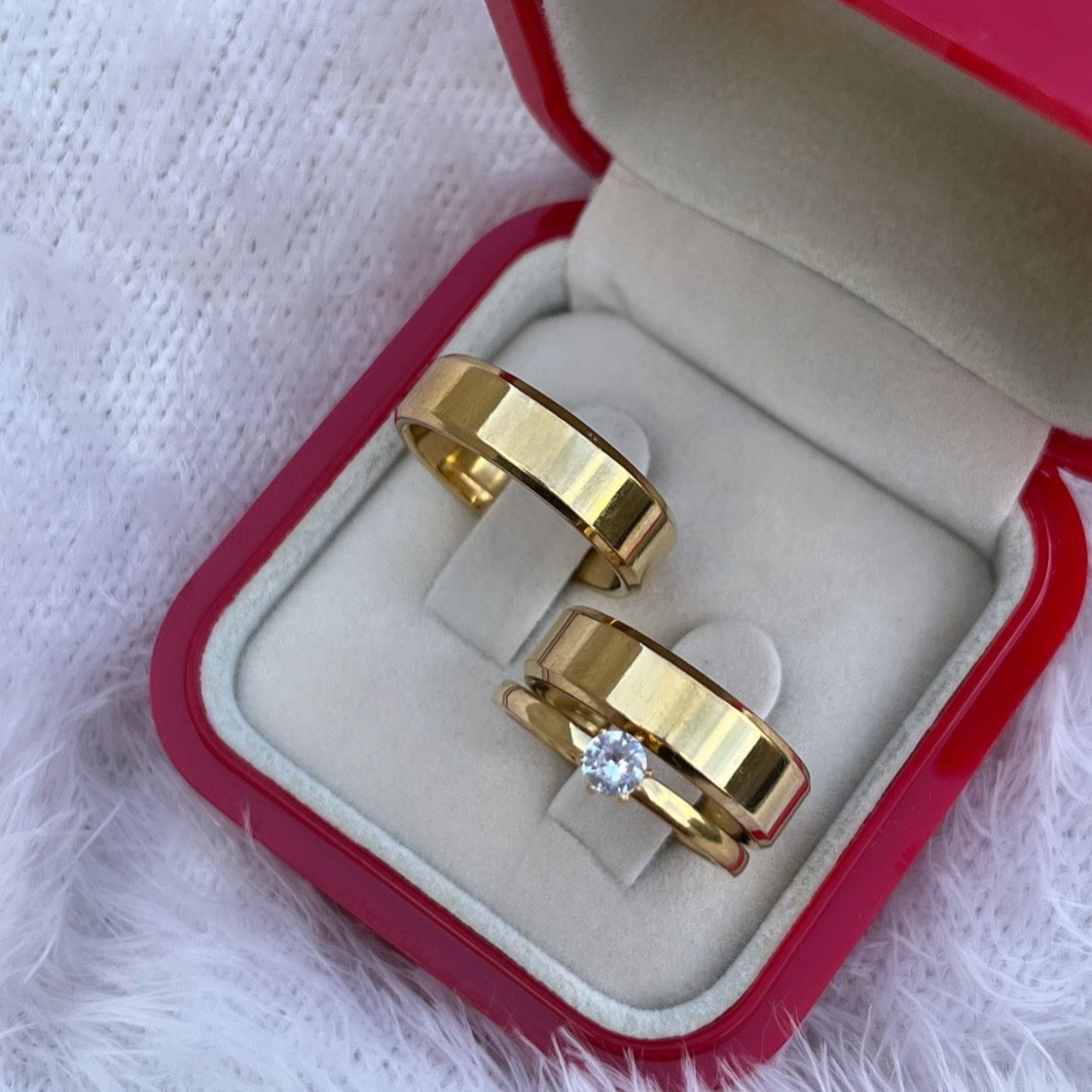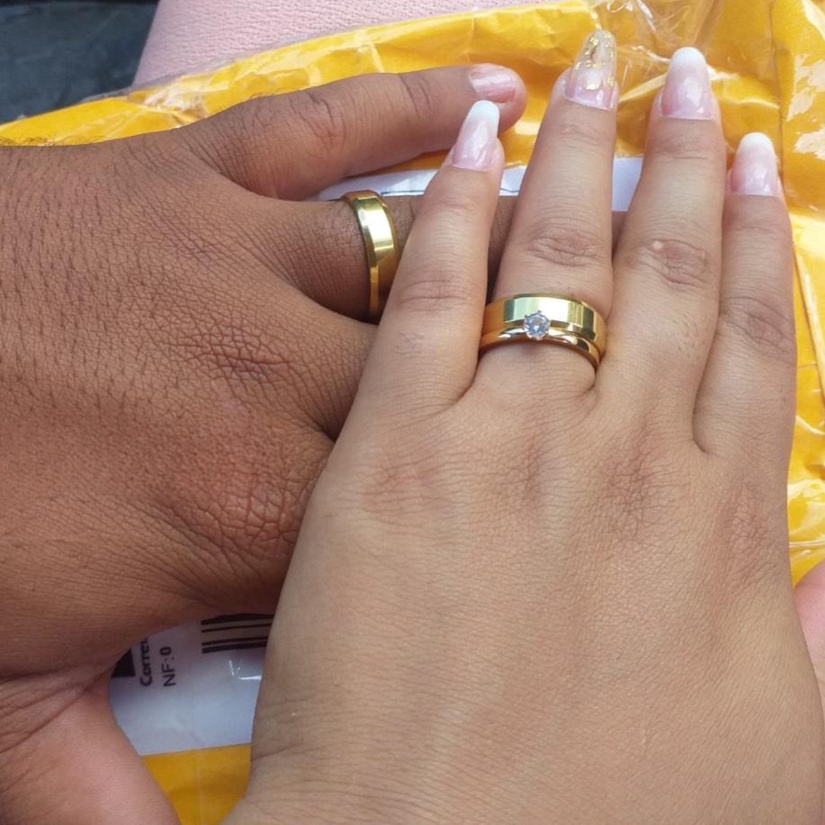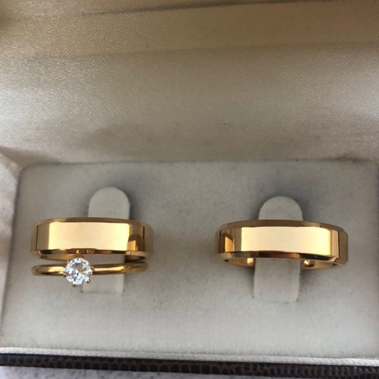Alianças de Casamento | Par de Alianças Banhadas a Ouro 18K – 6mm Lisas com Acabamento Chanfrado
