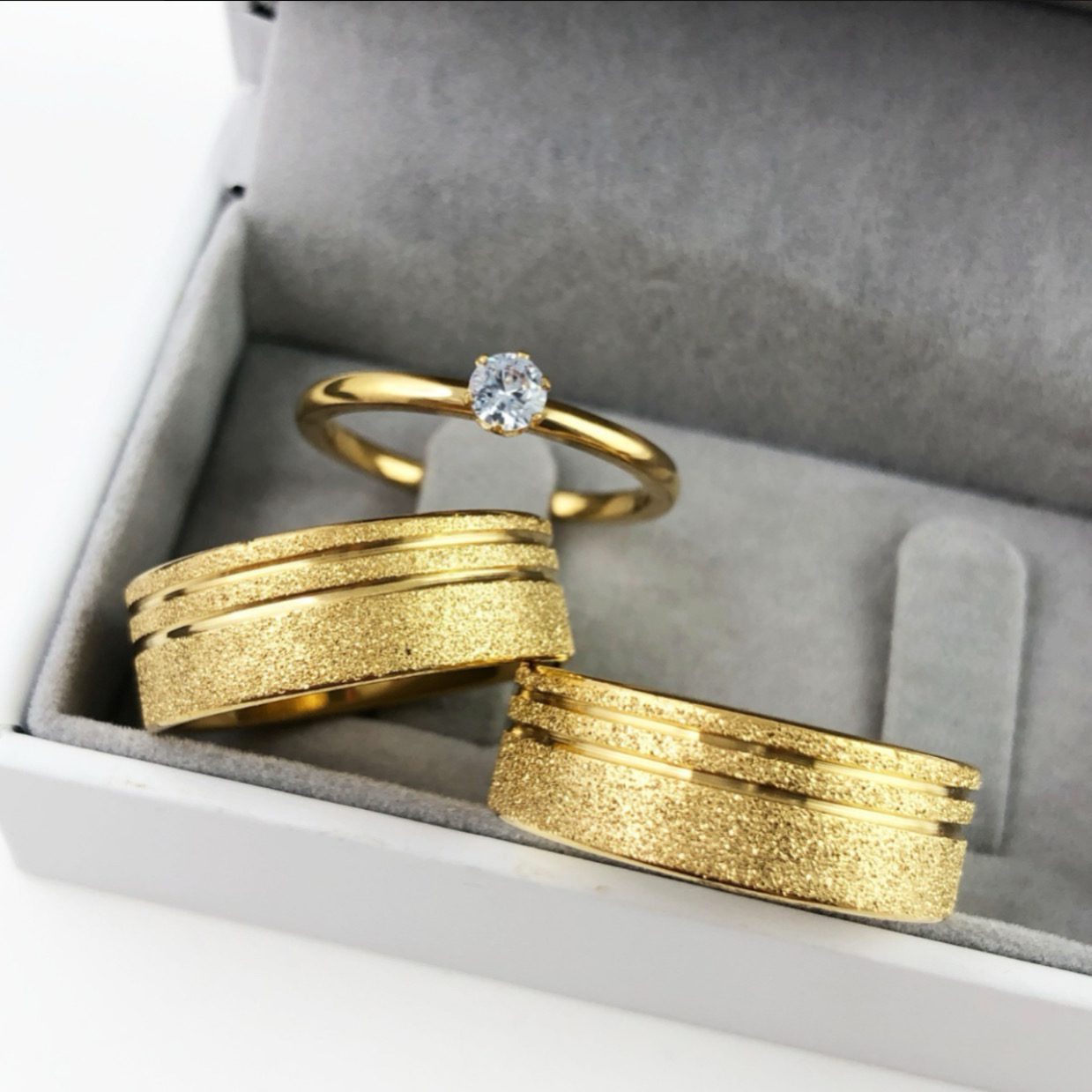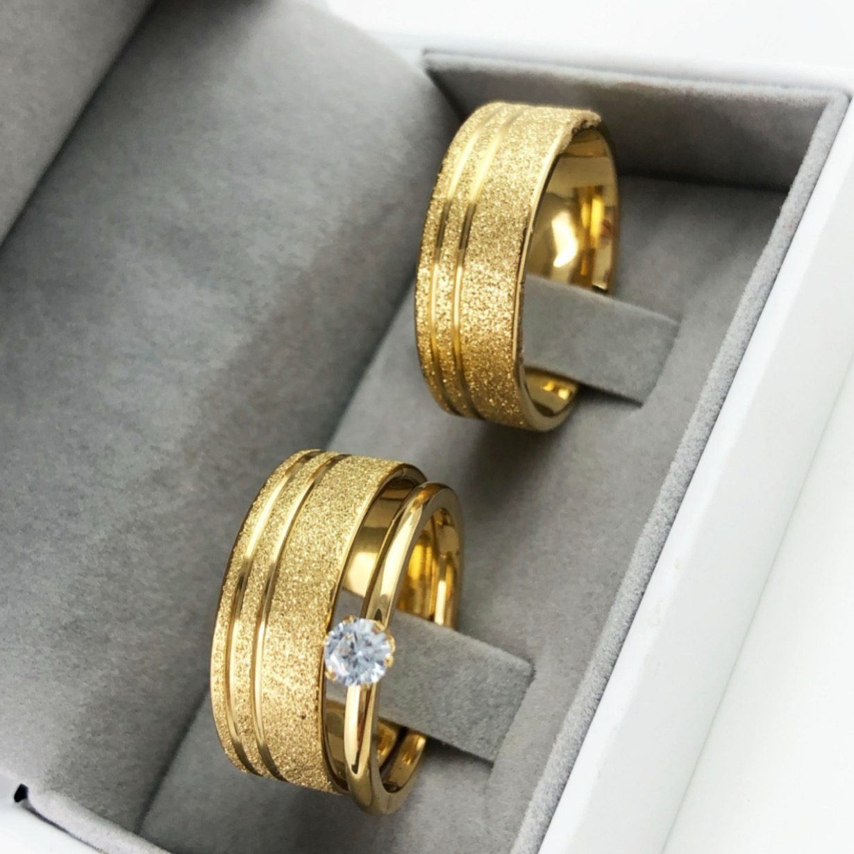 Alianças De Noivado Aço Cirúrgico Banhado A Ouro 18k – 8mm 2 Fios