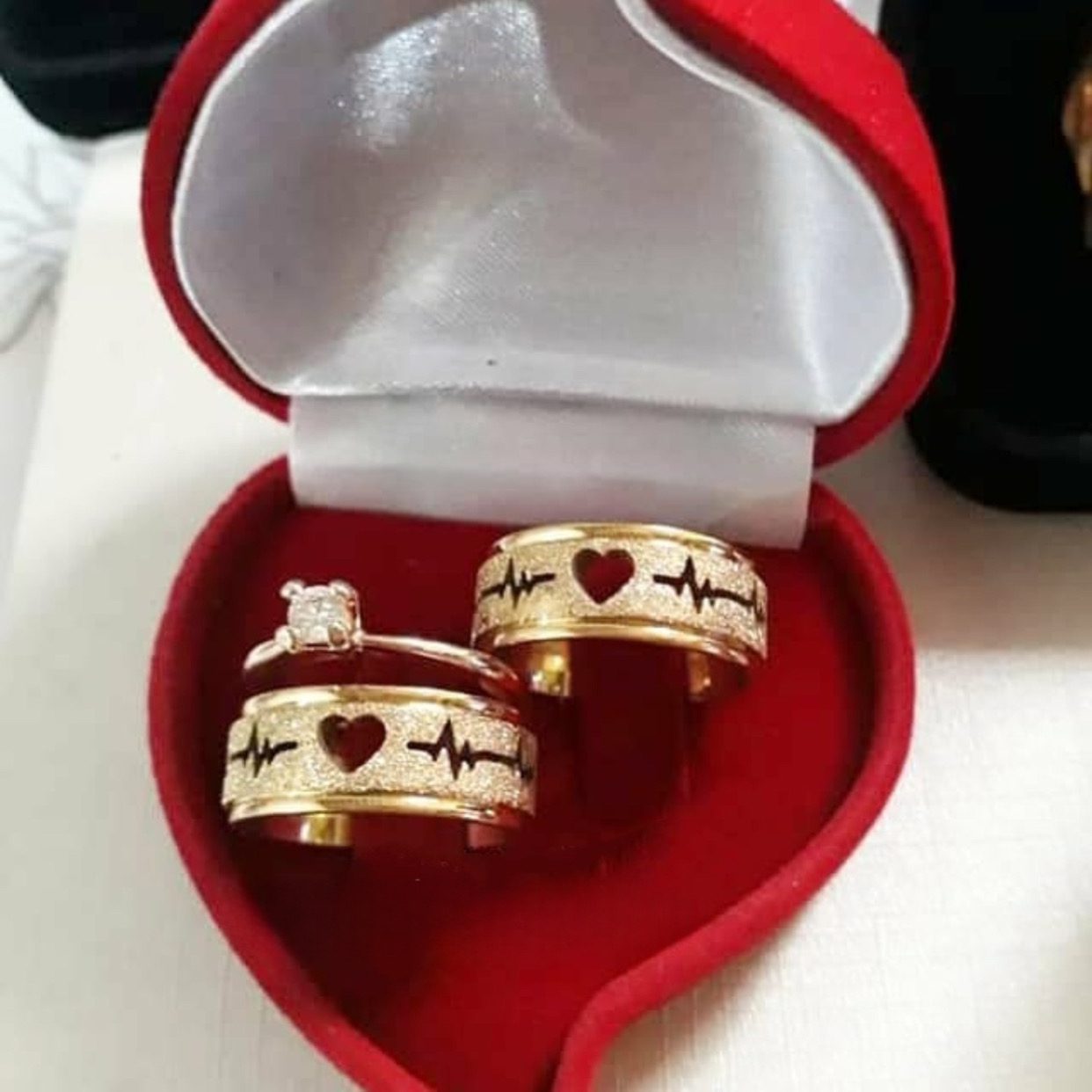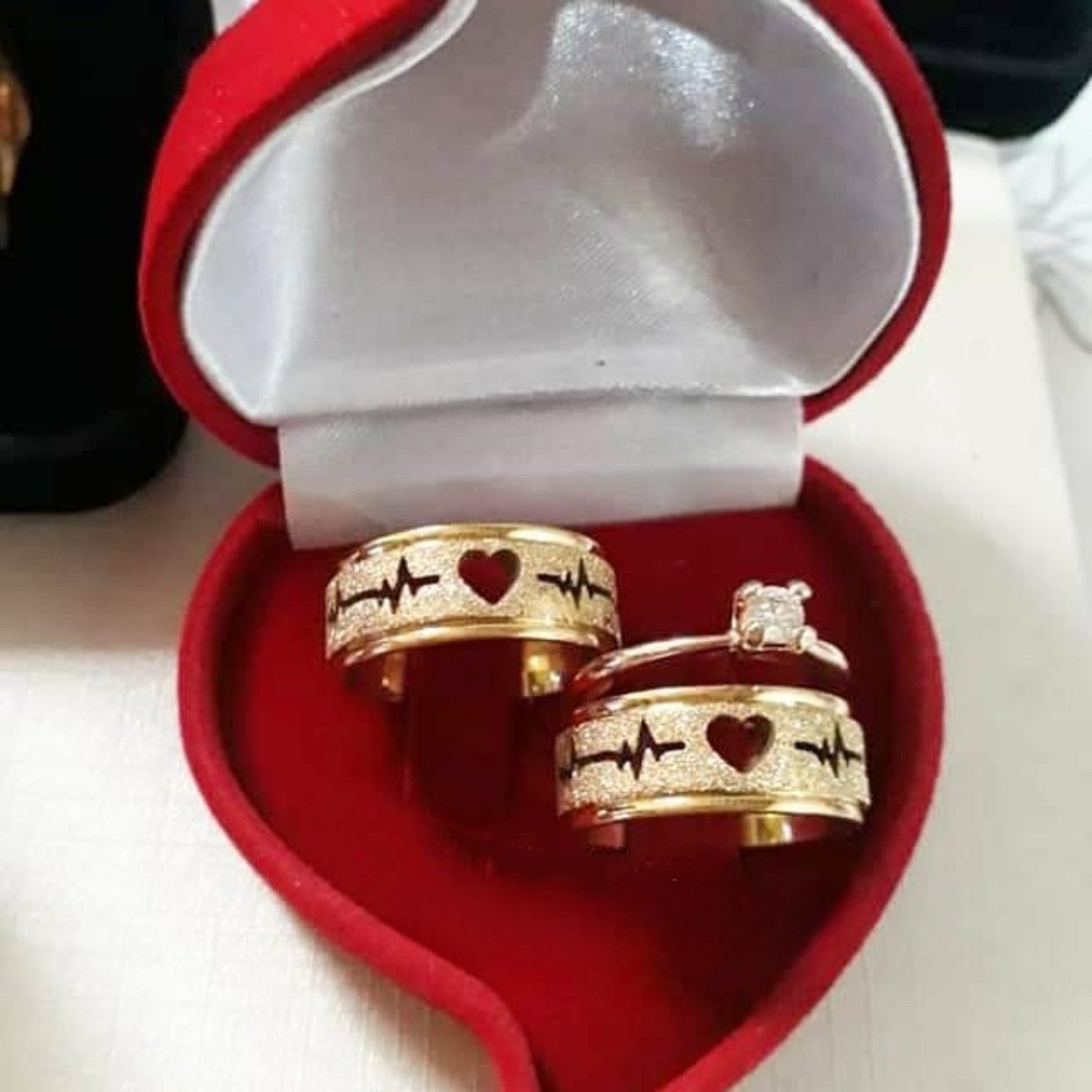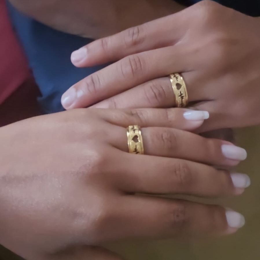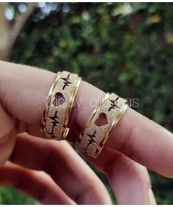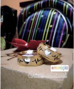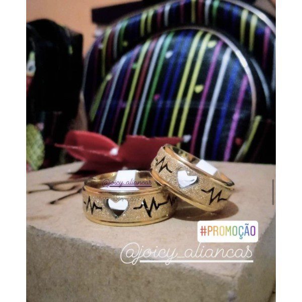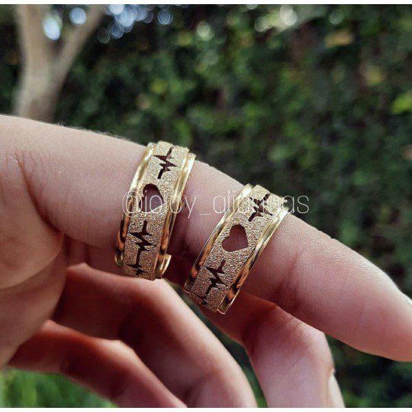 Par De Alianças Aço Cirúrgico Banhado A Ouro 18k 8mm Com Coração Vazado