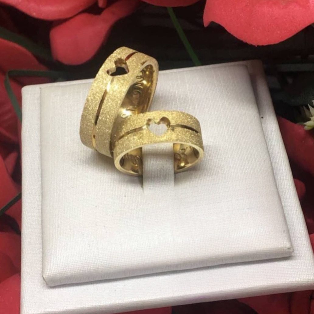 Par de alianças aço cirúrgico banhado a ouro 18k- 8mm- diamantado com coração – Ideal para casamento e noivado.