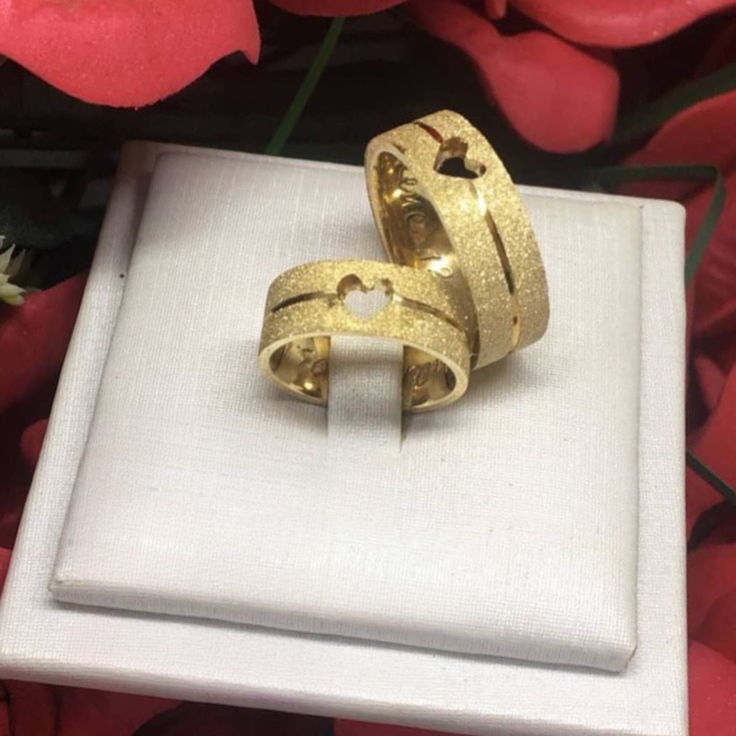 ● Par de Alianças em aço cirúrgico banhado a ouro 18k