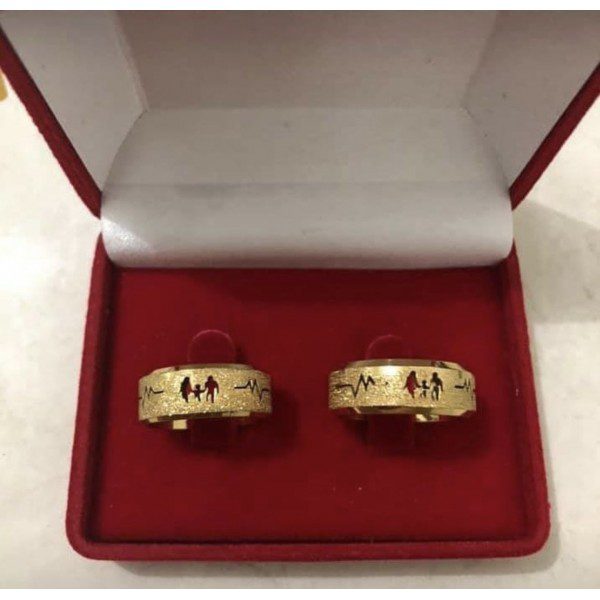 Par De Alianças Aço Cirúrgico Banhado A Ouro 18k – 8mm – Diamantado Família Chanfrado.