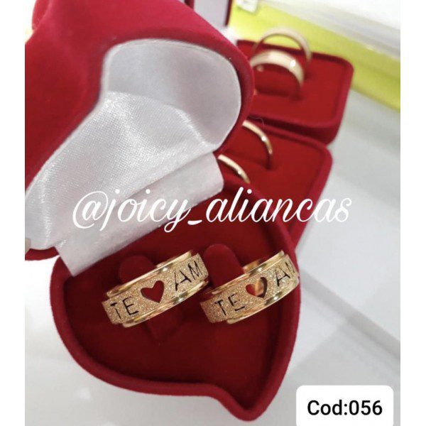 Par de alianças aço cirúrgico banhado a ouro 18k- 8mm diamantado te amo – ideal para casamento e noivado.