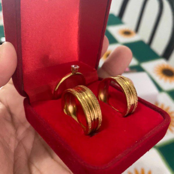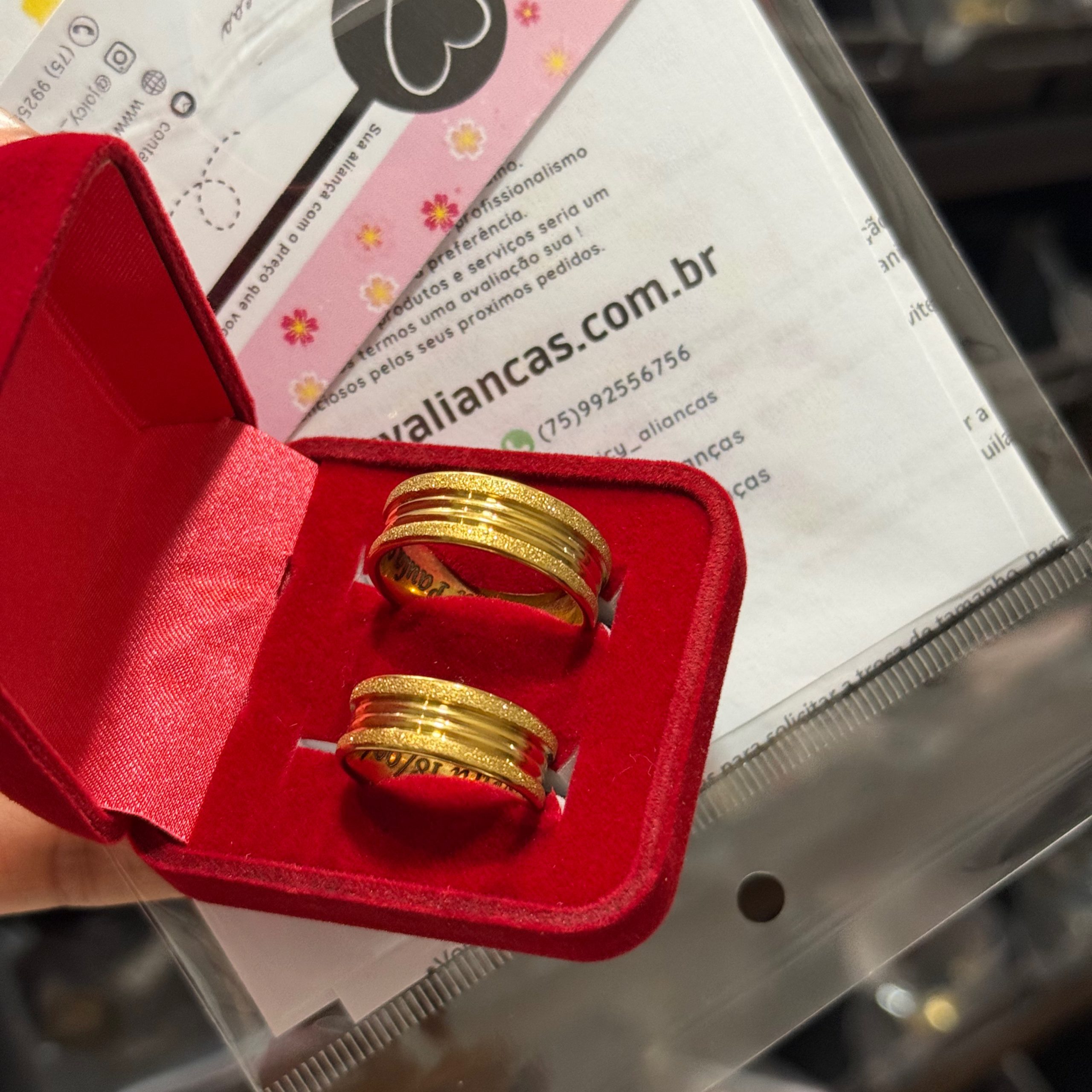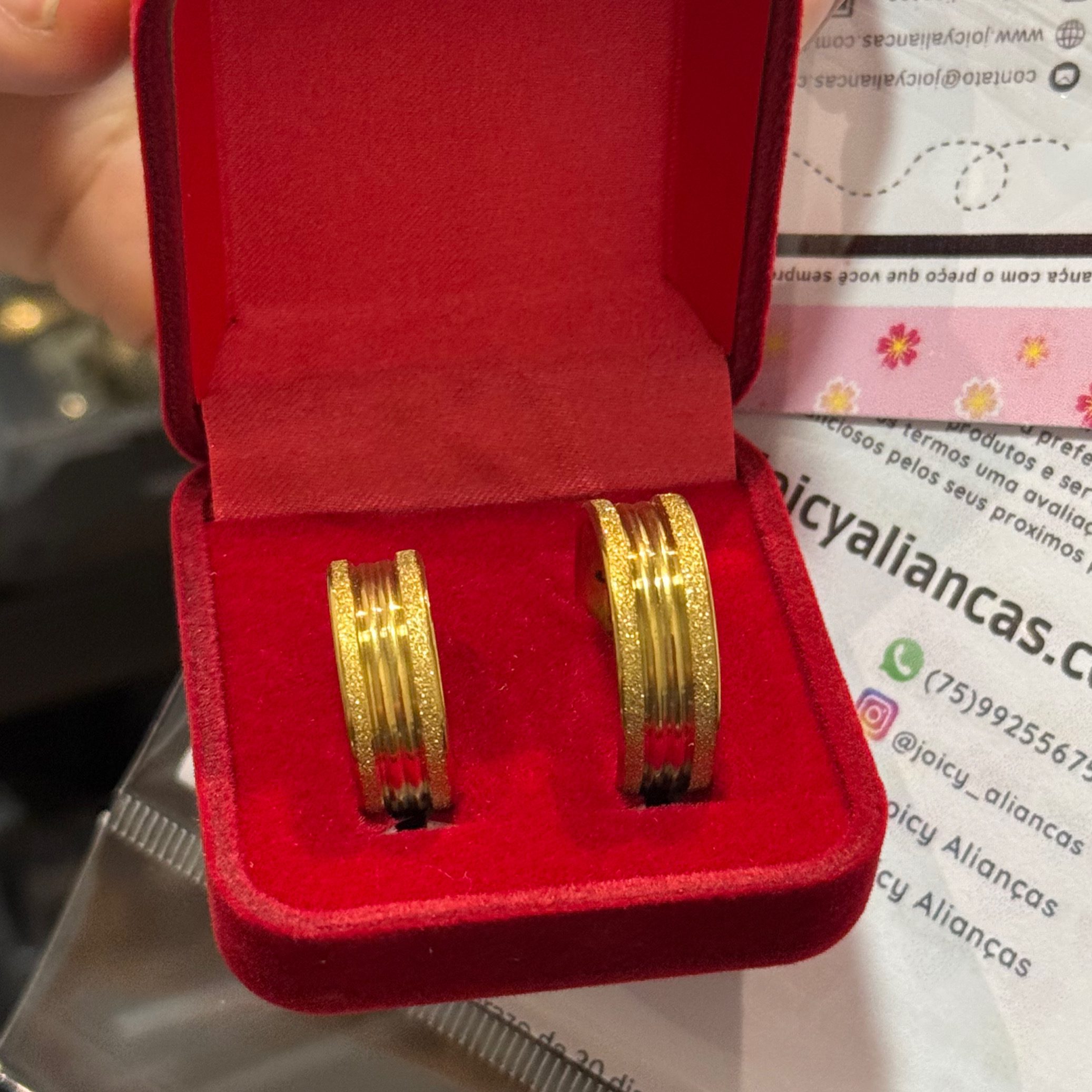 Par De Alianças Aço Cirúrgico Banhado A Ouro 18k 8mm – Estilo Bulgari