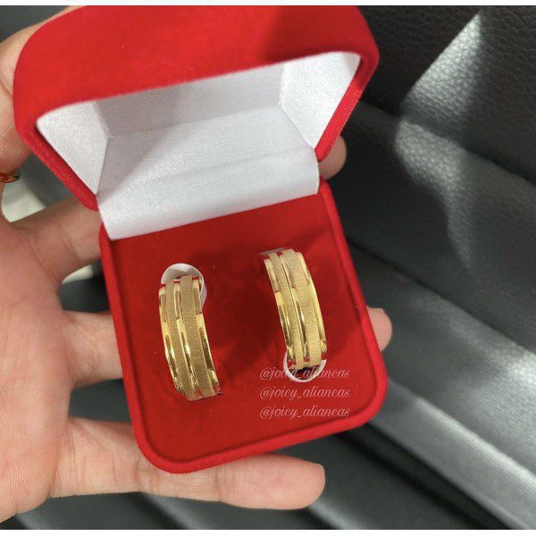 Par De Alianças Aço Cirúrgico Banhado A Ouro 18k – 8mm – Fosco Com Friso