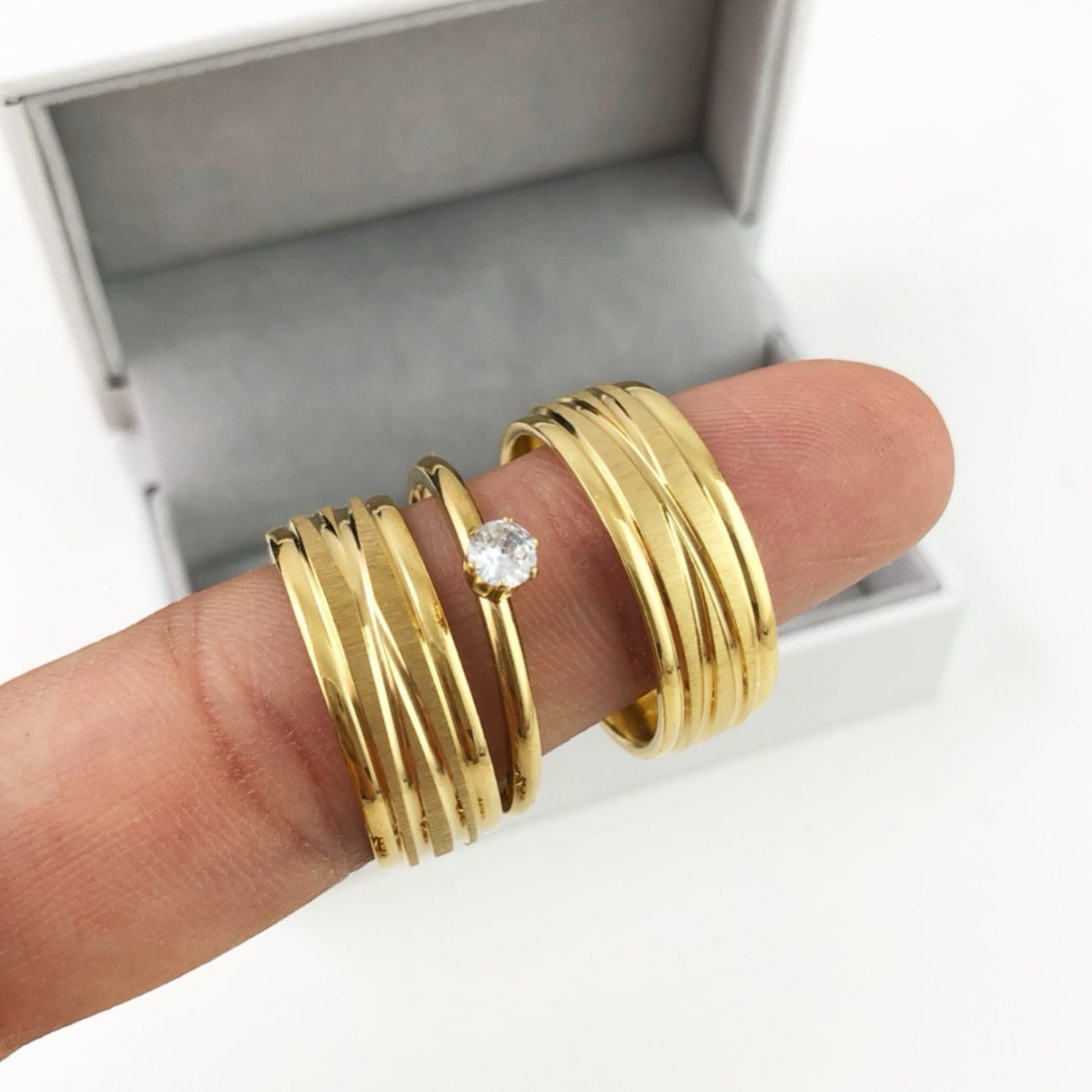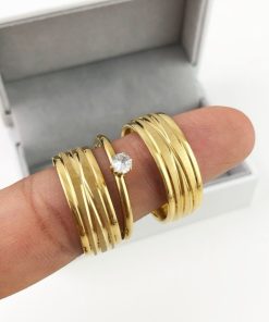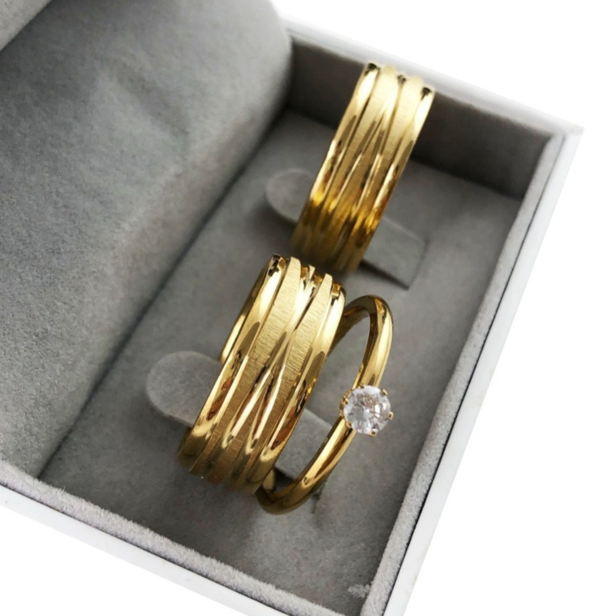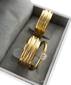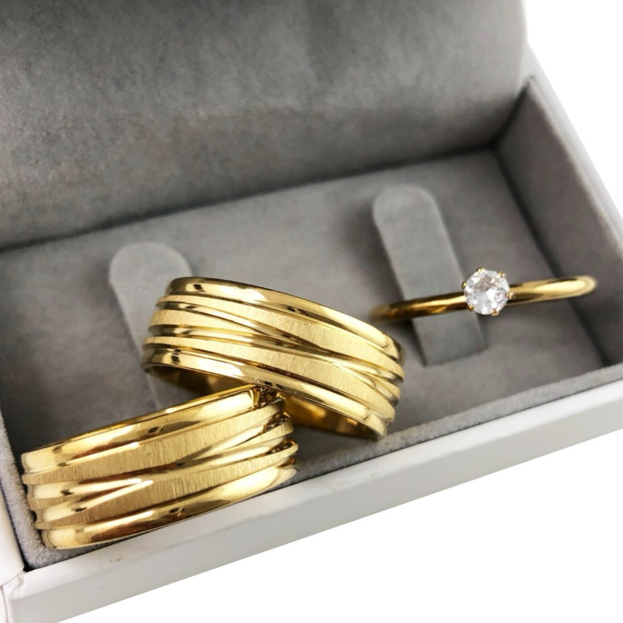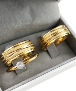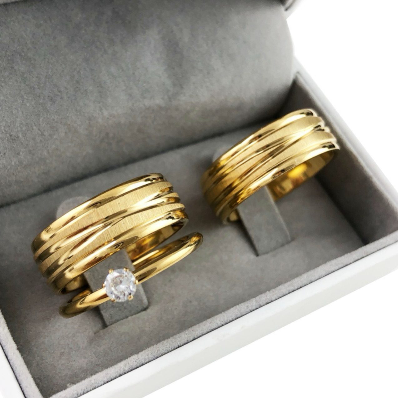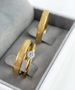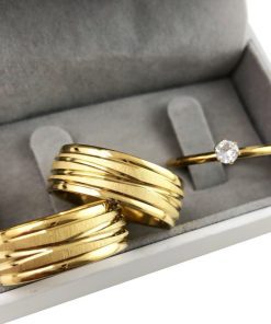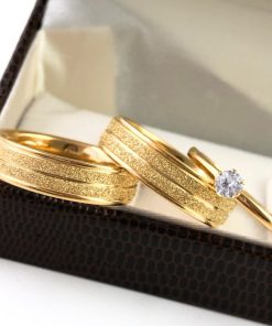 Par De Alianças Aço Cirúrgico Banhado A Ouro 18k – 8mm – Fosco Com Linhas Cruzadas