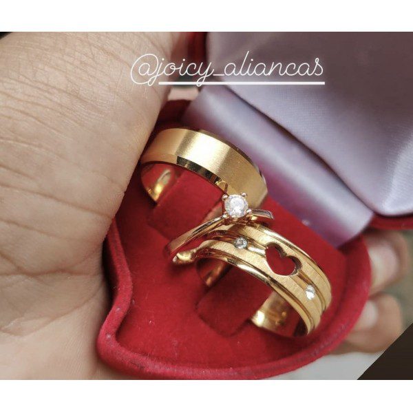 Par De Alianças Aço Cirúrgico Banhado A Ouro 18k – 8mm – Fosco MOD 71