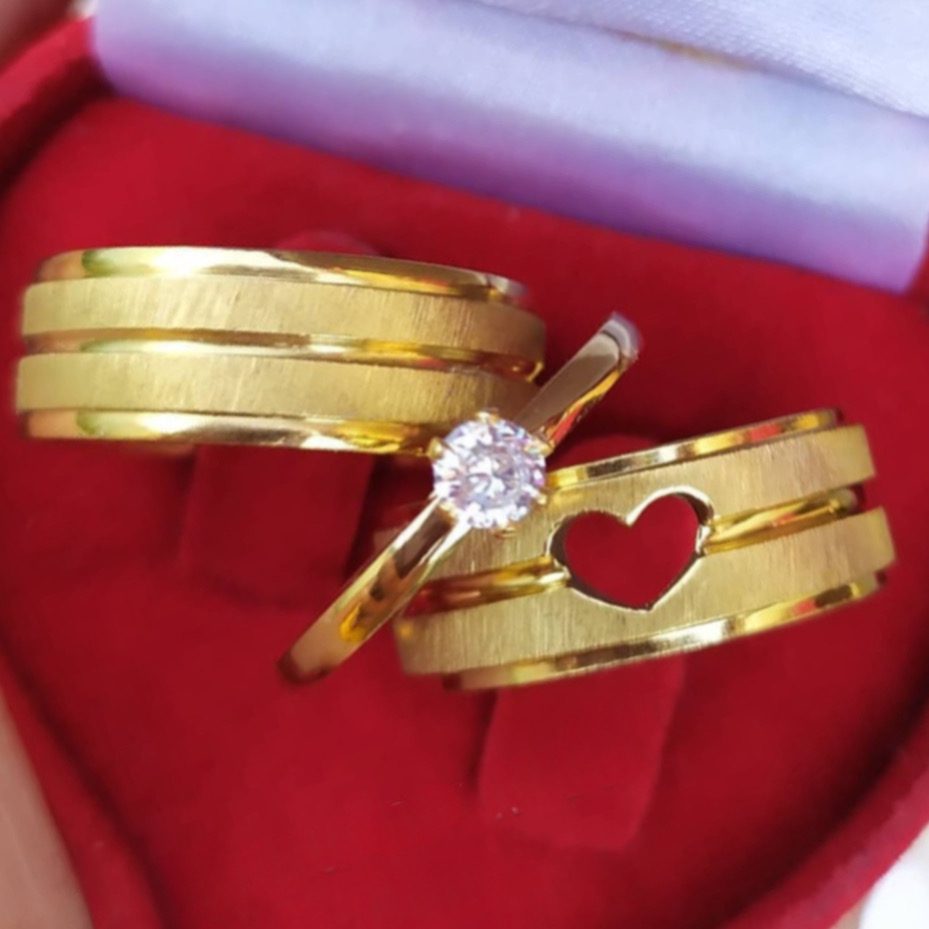 Par de alianças aço cirúrgico banhado a ouro 18k- 8mm fosco mod com coração – ideal para casamento e noivado.