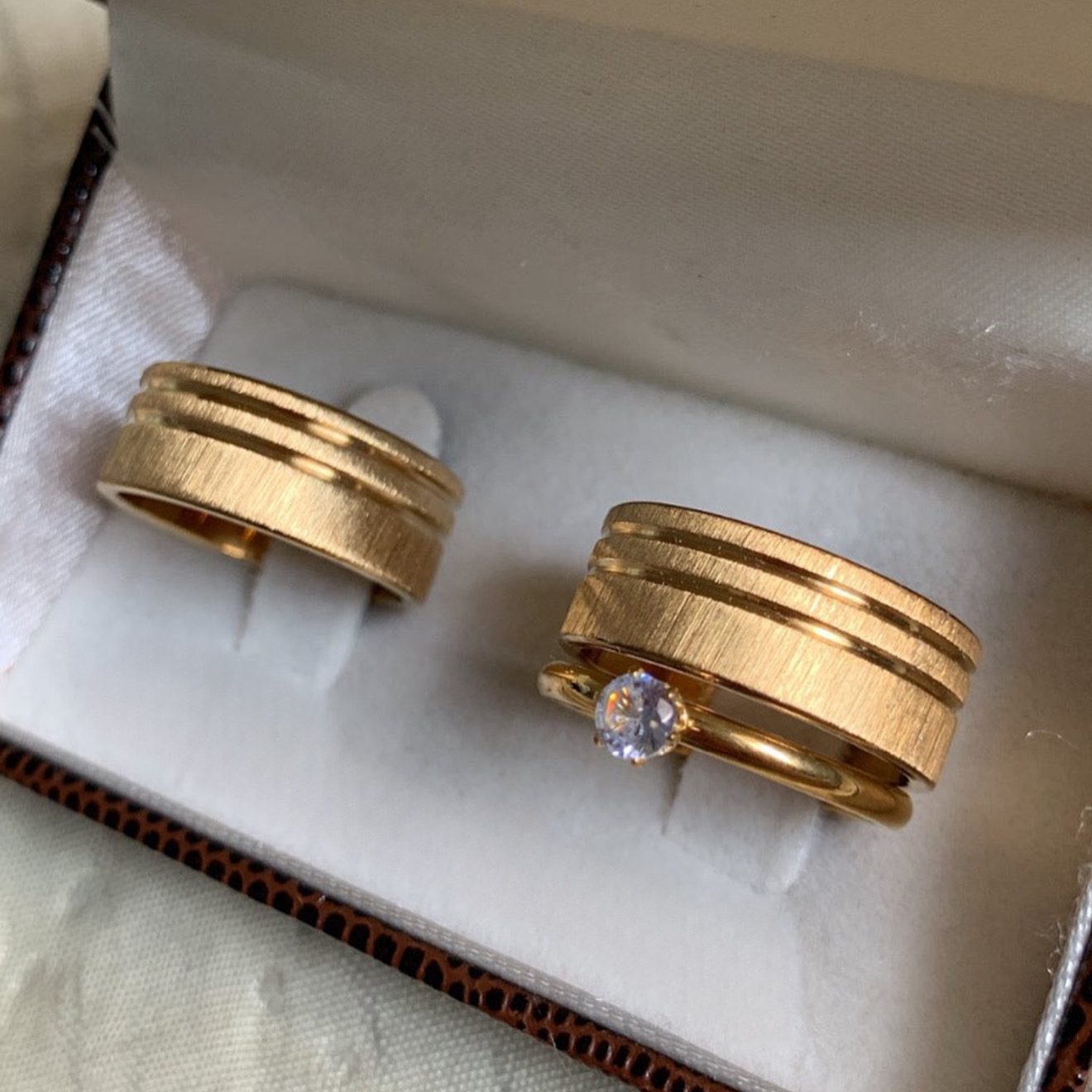 • 1 Par de alianças em aço cirúrgico banhado a ouro 18K