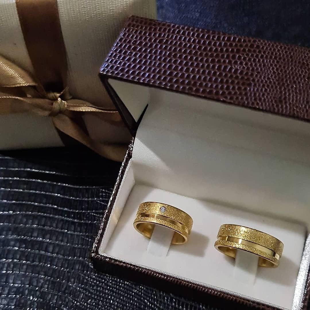 Alianças De Noivado Banhado A Ouro 18k – 8mm – Diamantado Com Pedrinha