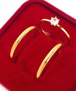 O anel solitário é confeccionado em liga metálica com banho de ouro rosé, o que garante um acabamento delicado e elegante. Por se tratar de uma liga diferente do aço cirúrgico, a tonalidade do rosé pode ser mais intensa e levemente mais rosada, sendo uma característica natural do material utilizado.