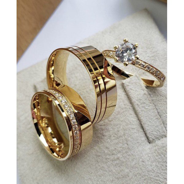 Alianças de Casamento 8mm | Moeda Antiga | 15 Pedras de Zircônia | 2 Frisos Laterais