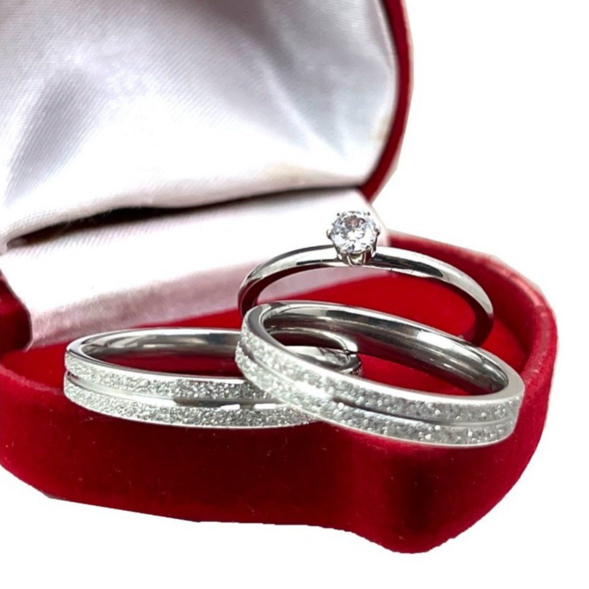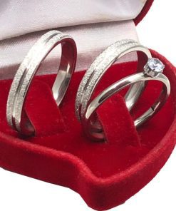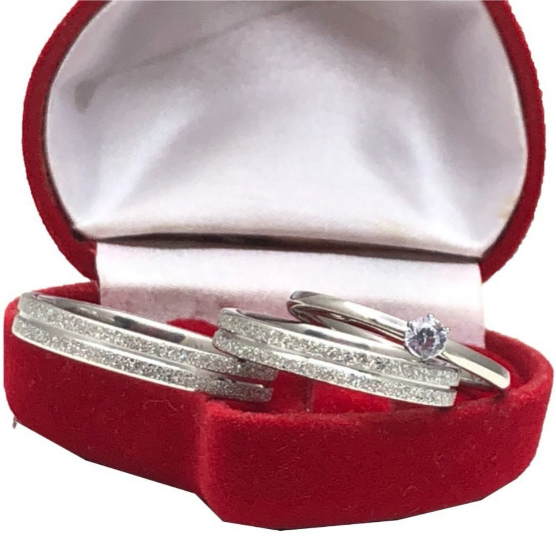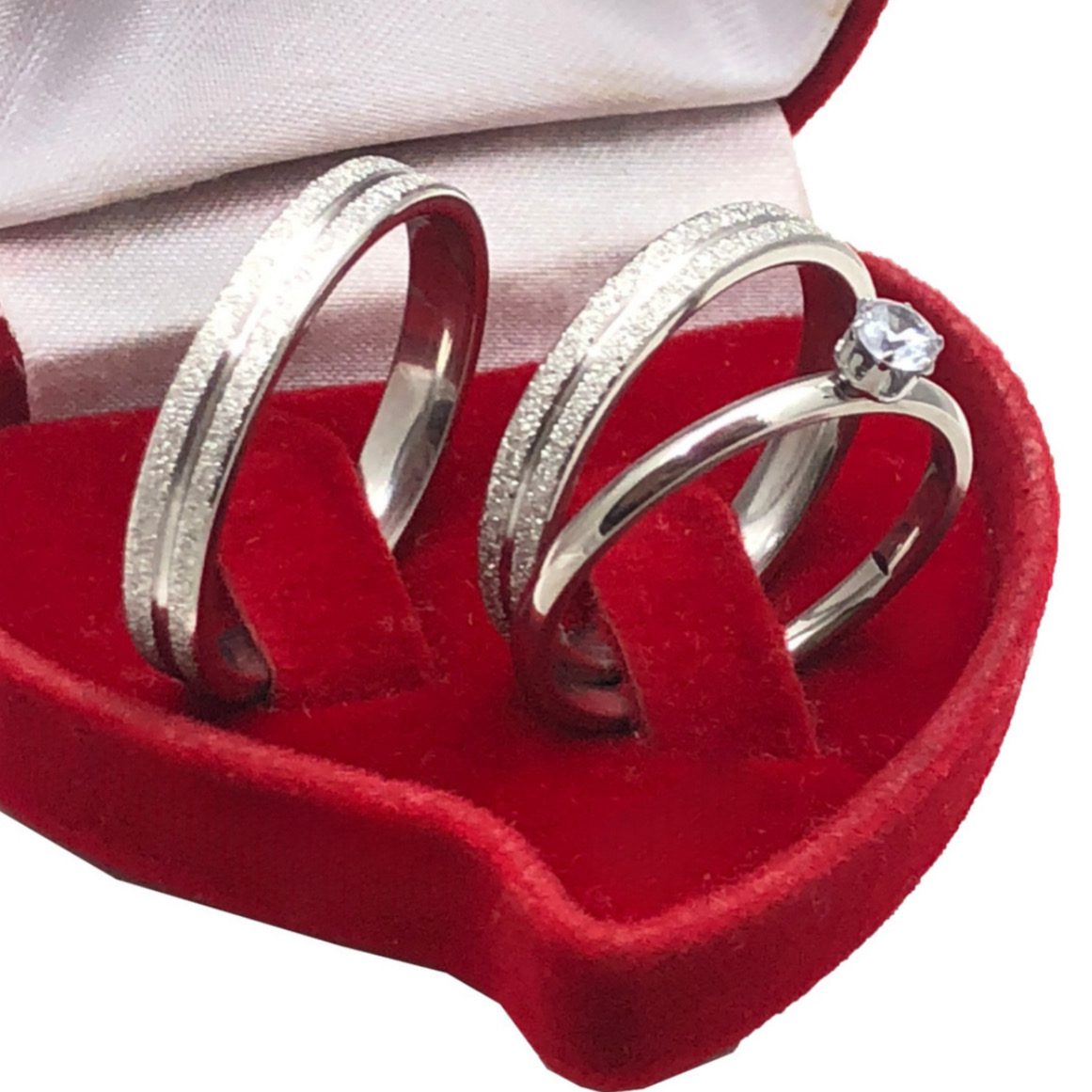 Par De Alianças De Compromisso 4mm Diamantado E Friso Central