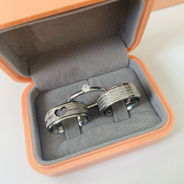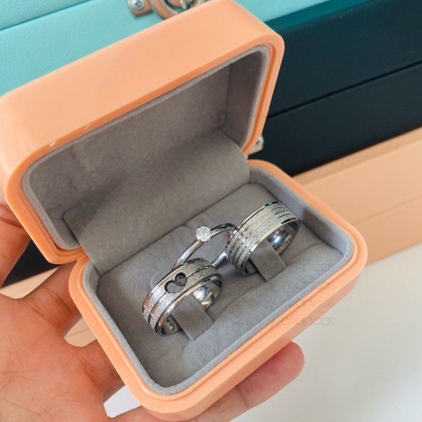 ● Par de Alianças prata em aço cirúrgico.