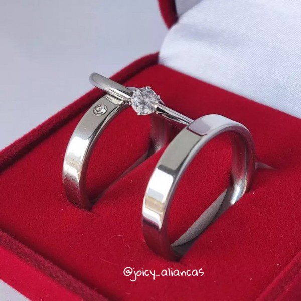 ● Par de Alianças prata em aço cirúrgico.