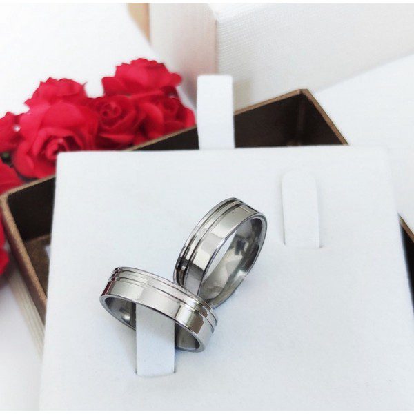 ● Par de Alianças prata em aço cirúrgico.