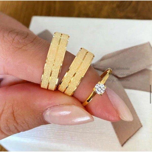 O Par de Alianças Modelo Manoela é a escolha ideal para casais que buscam elegância e exclusividade. Com 7mm de largura, as alianças são feitas em moeda antiga e banhadas a ouro 18k, oferecendo uma combinação de durabilidade e beleza. O revestimento de aço cirúrgico é opcional, proporcionando ainda mais conforto e resistência. O anel solitário é opcional, para dar um toque extra de glamour.