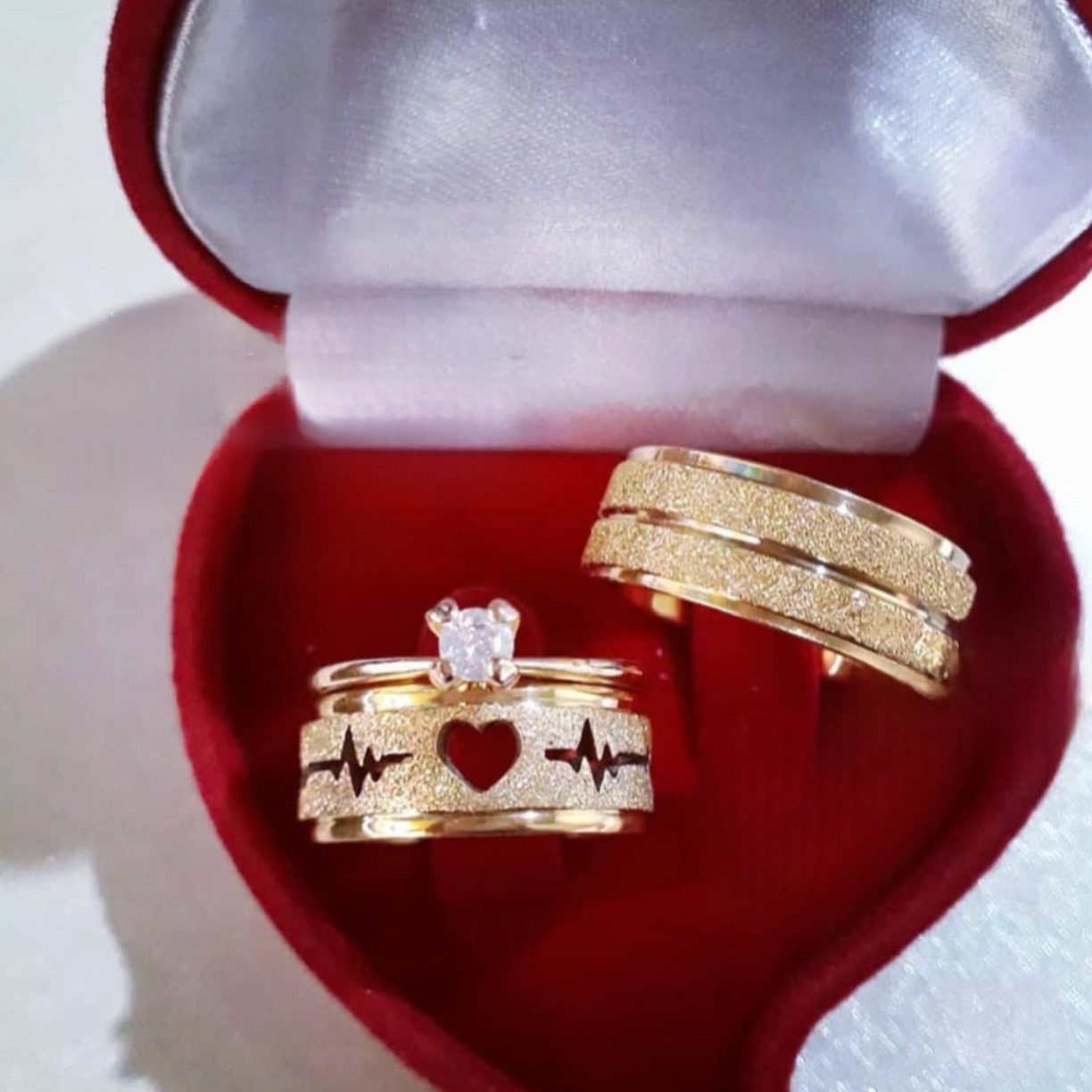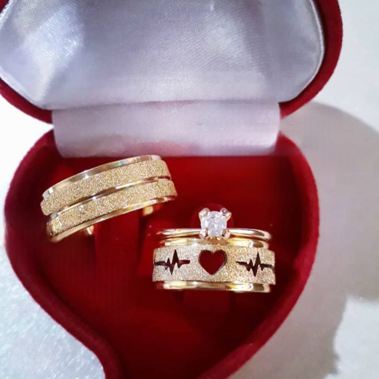 Par de Alianças em aço cirúrgico banhado a ouro 18k Feminino com coração vazado MOD 33 – Ideal para casamento e noivado.