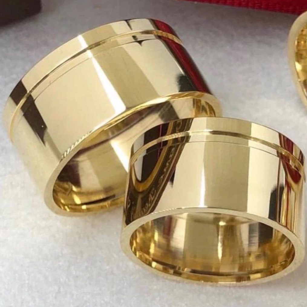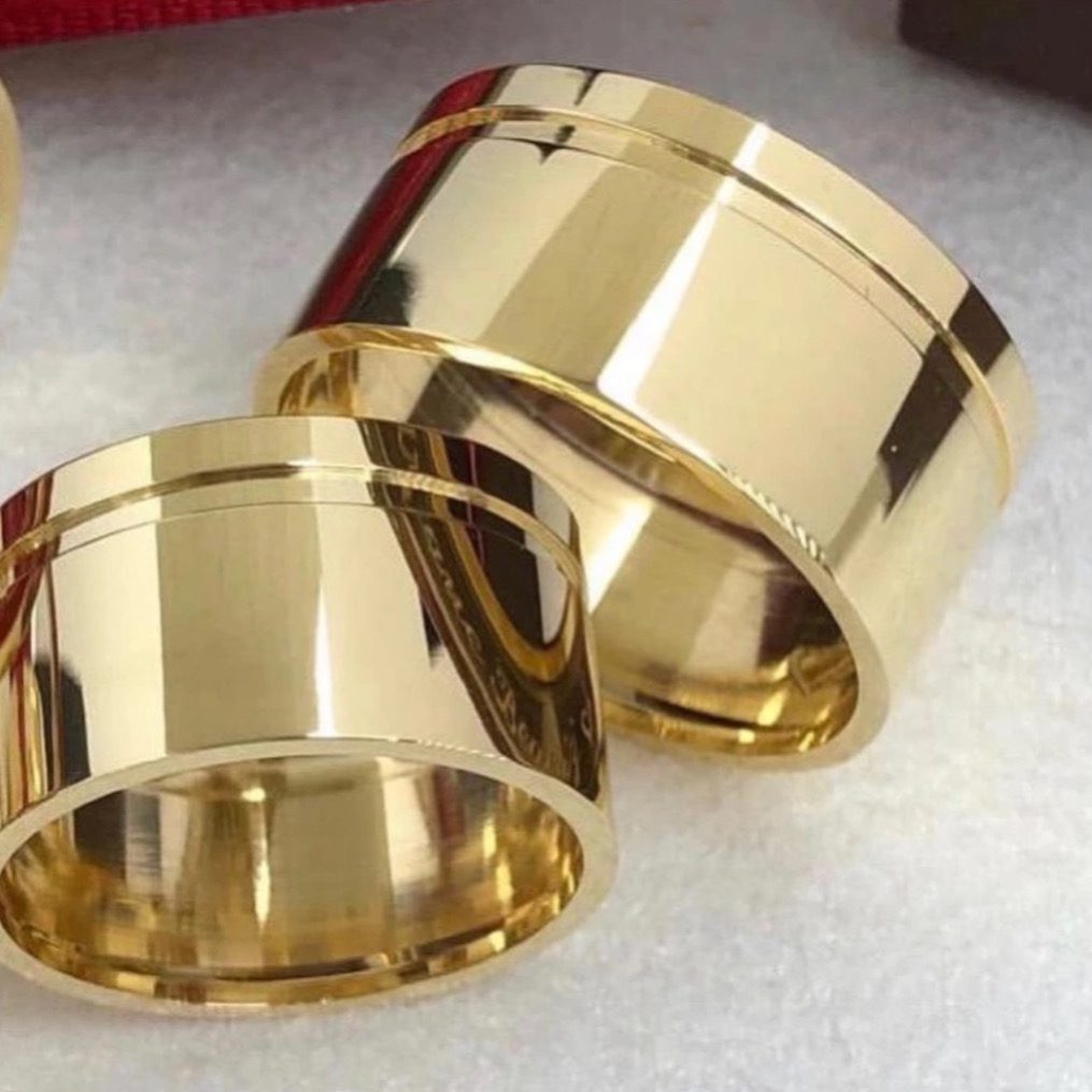 Alianças de Casamento 10mm | Anatômico | Moeda Antiga Banhada a Ouro 18K