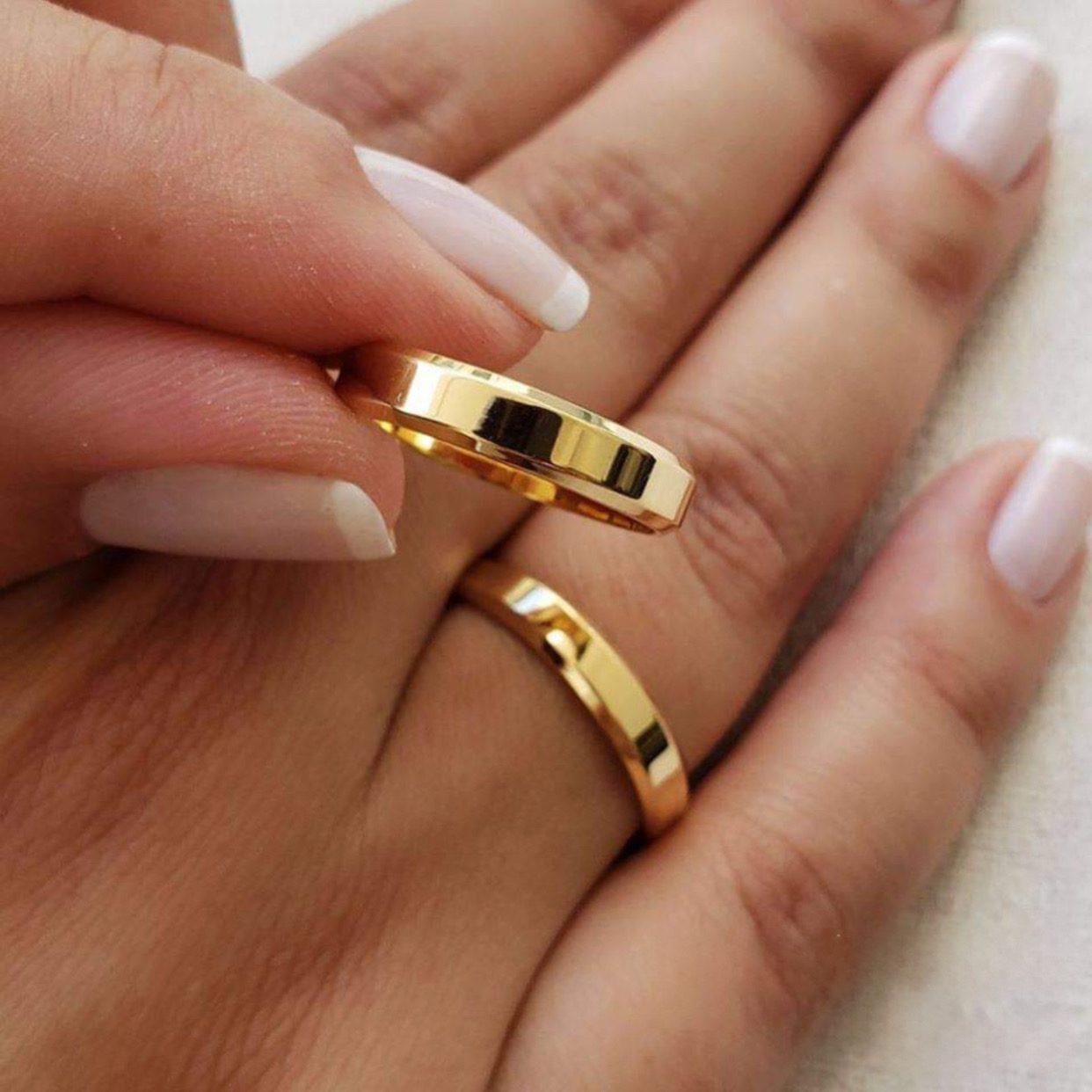 Alianças de casamento | Par de alianças em moeda antiga 4mm chanfrado – Banho de ouro 18k