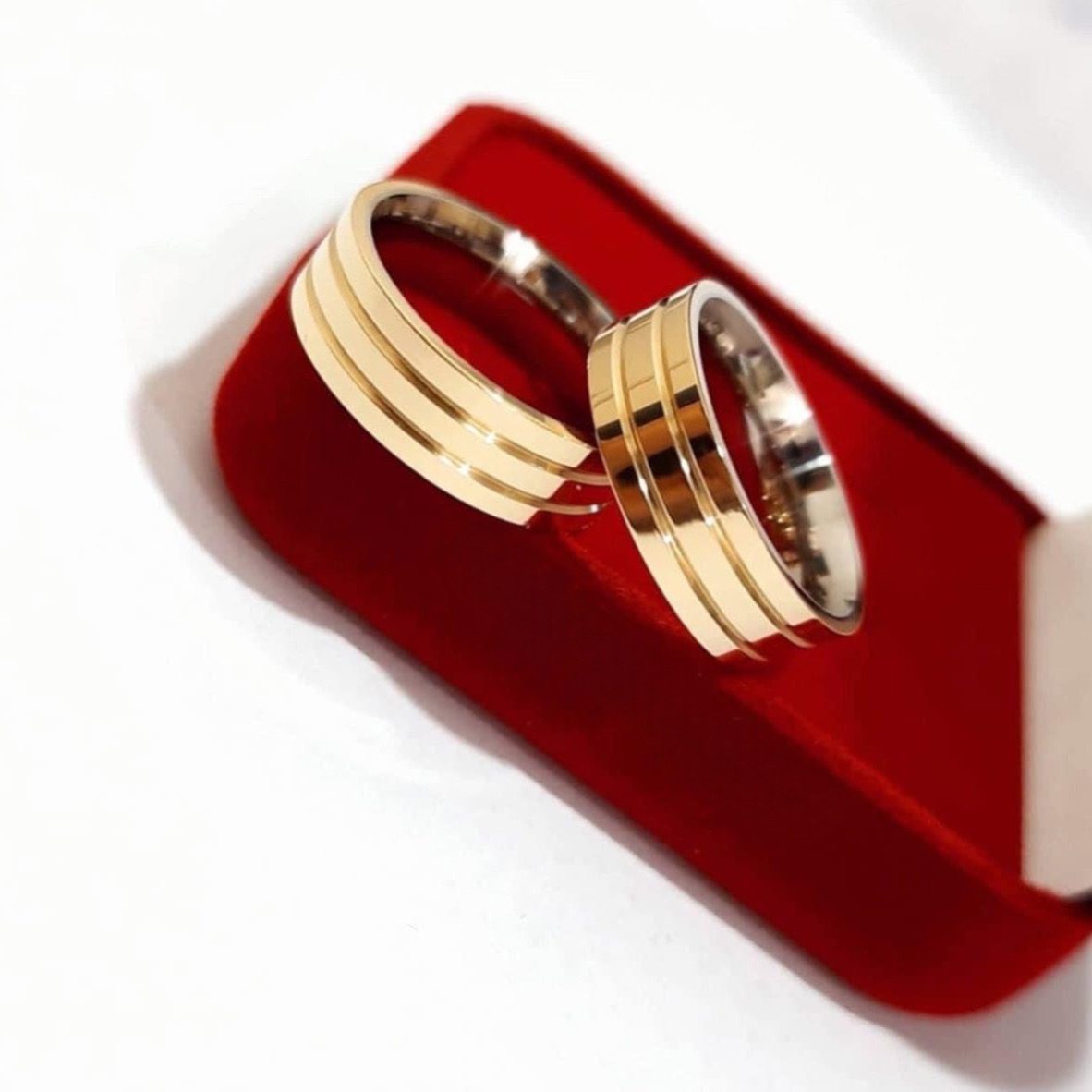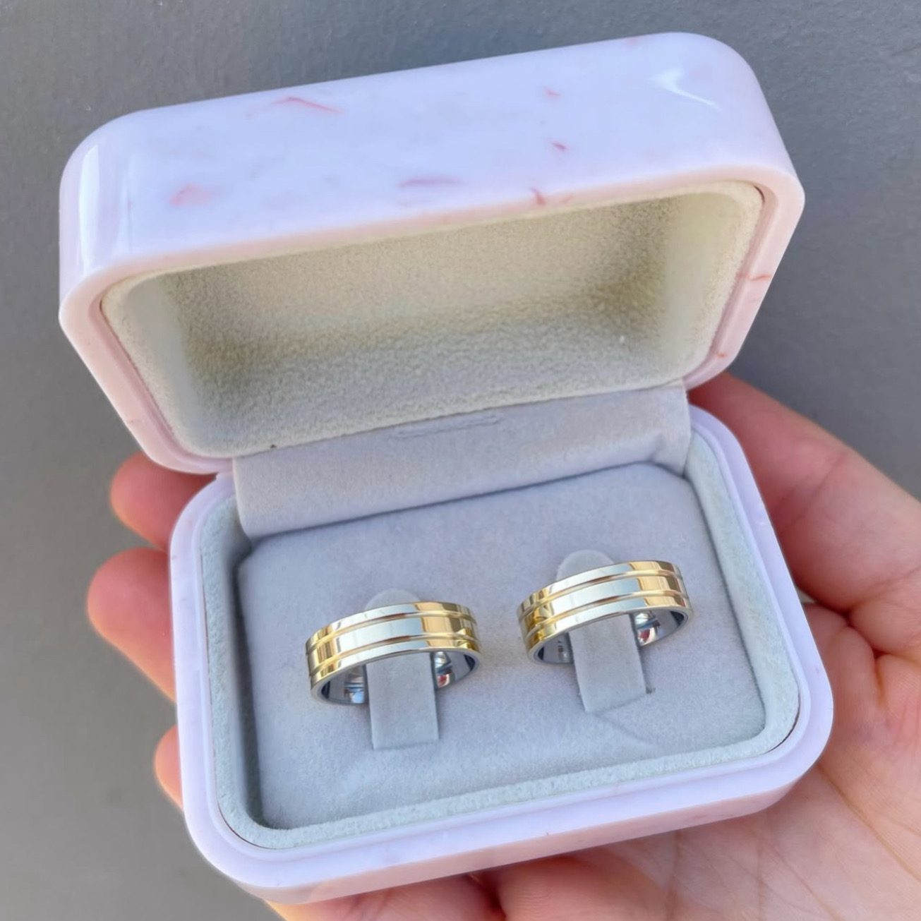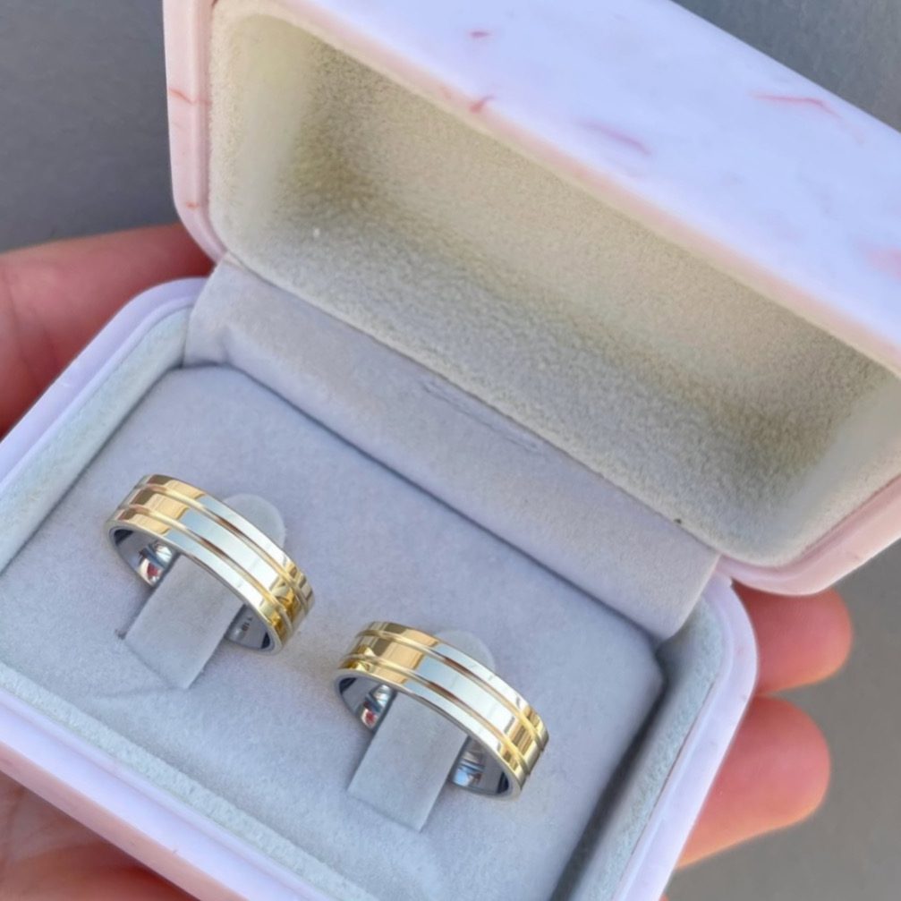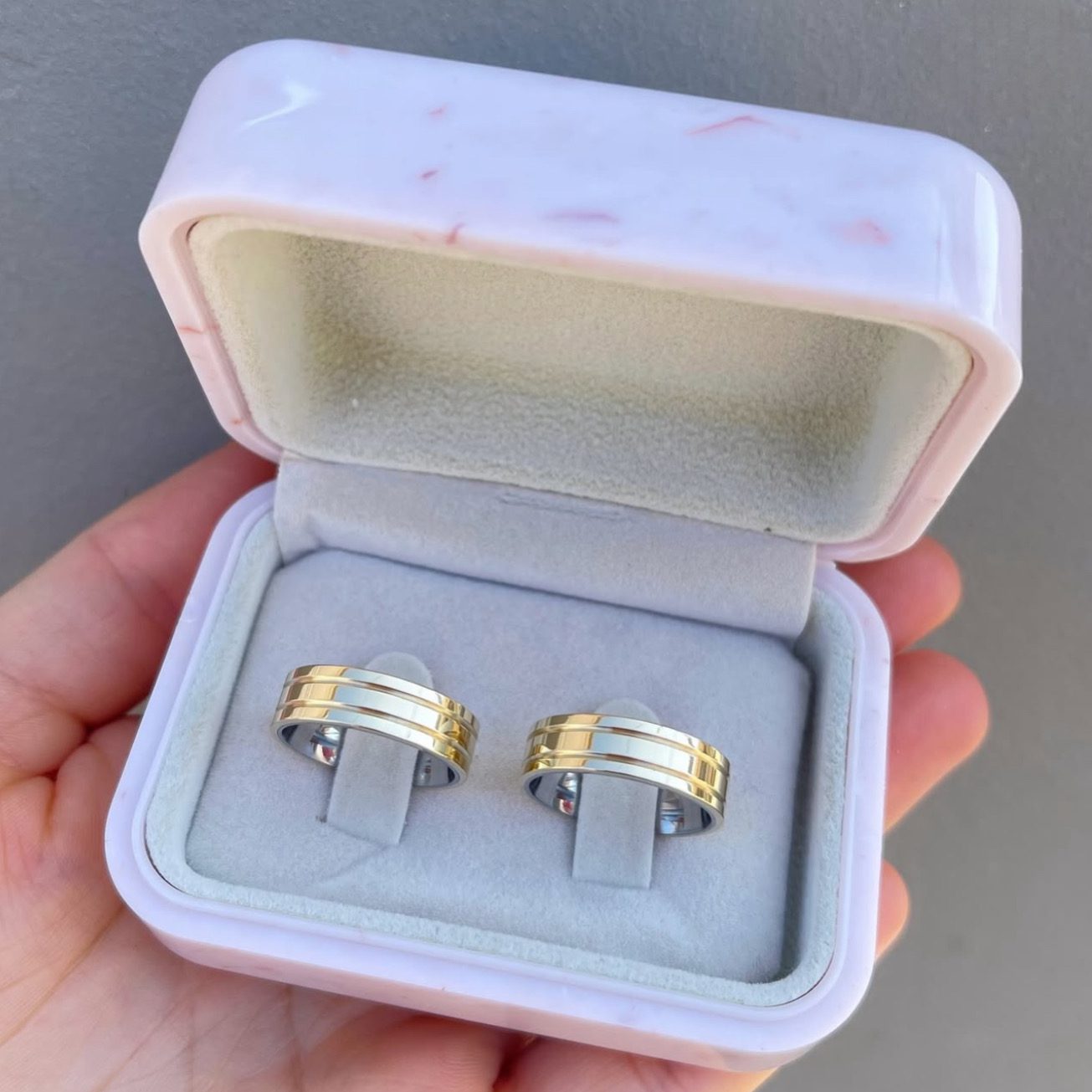Estas alianças de casamento trazem um design moderno e sofisticado, com 6mm de largura e 2 frisos laterais, aplicados de canto a canto. O acabamento semi anatômico oferece um ajuste confortável, ideal para o uso diário, sem abrir mão do estilo. Feitas em moedas antigas, as alianças possuem resistência e brilho, sendo banhadas a ouro 18k para garantir durabilidade e elegância. Como opcional, o revestimento de aço cirúrgico pode ser adicionado para uma maior resistência ao desgaste.