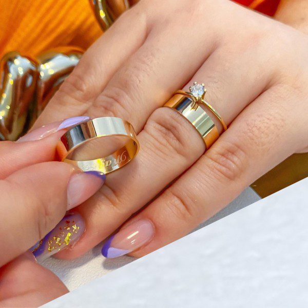 • Oferecemos a opção de gravação no par de alianças. No entanto, pedimos que verifique atentamente os tamanhos antes de solicitar a gravação, pois, em caso de troca devido ao tamanho, a gravação impede a devolução ou troca do produto.
