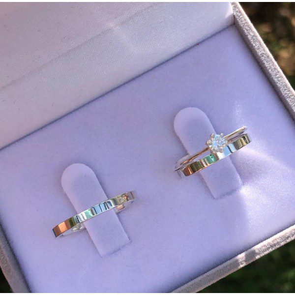 Alianças de Namoro Finas em Prata 950 | 2mm Liso | Reto Semi Anatômico | Modelo Cibele | Anel Solitário Incluso