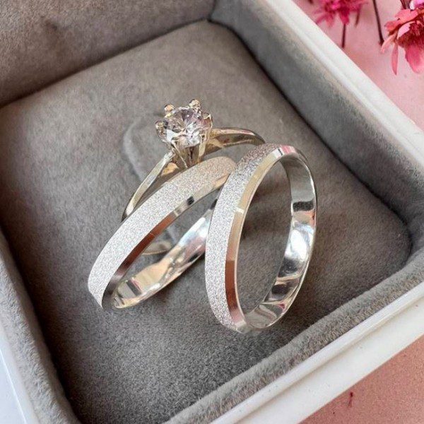 Este modelo é ideal para casais que desejam alianças modernas e elegantes, com um acabamento diamantado chanfradoque proporciona sofisticação e brilho, além do anel solitário incluso para complementar o conjunto de maneira única.