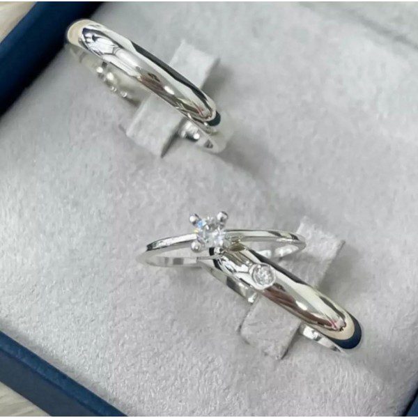 Para complementar o conjunto, há a opção de incluir um anel solitário cravejado com pedra de zircônia, tornando o par ainda mais encantador.