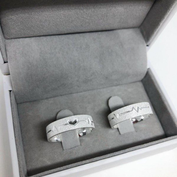 • Par de Alianças em Prata 950 – Modelo com Batimentos Cardíacos (Largura 6mm)