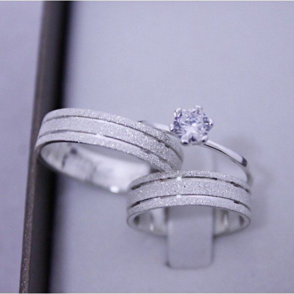 A aliança feminina apresenta um acabamento refinado, enquanto a aliança masculina mantém um estilo clássico, garantindo harmonia ao conjunto. Para completar a peça, um anel solitário cravejado com pedra de zircônia está incluso, agregando ainda mais brilho e sofisticação ao conjunto.