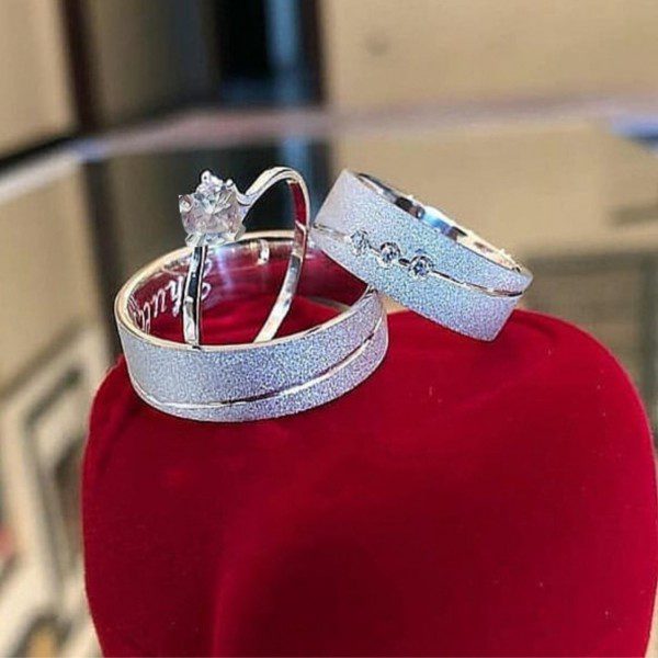 Alianças de Namoro em Prata 950 8mm | Modelo Emma | Diamantado com 1 Friso Ondulado | Anel Solitário Incluso