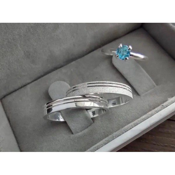 Alianças de Namoro em Prata 950 4mm | Reto Semi Anatômico com 2 Frisos Laterais | Anel Solitário Incluso